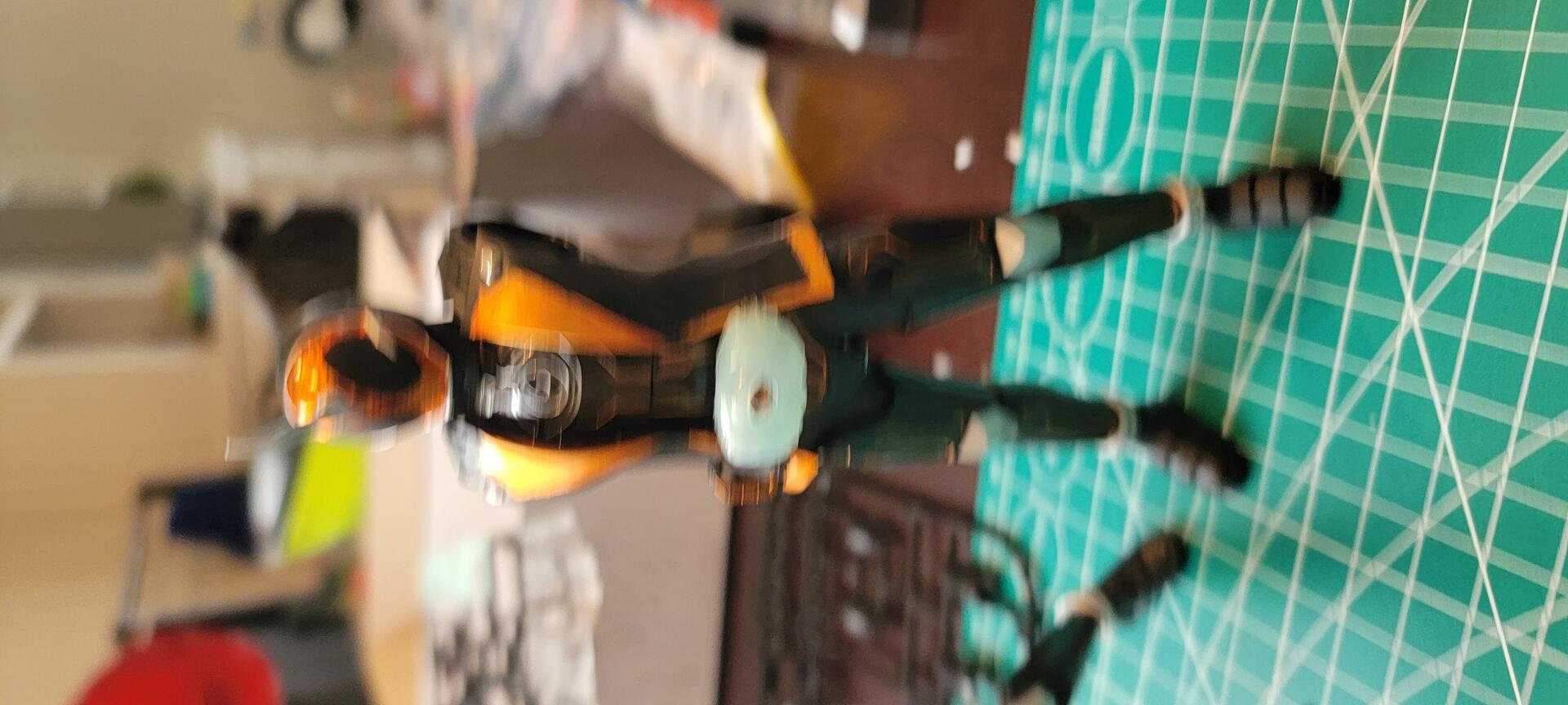 If you're not wanting to deal with stickers, the metallic orange gundam marker from metallic marker set 2 is doing a fantastic job.