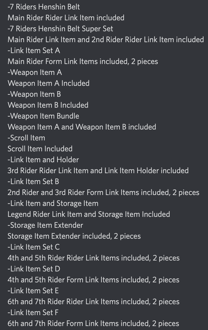 Geats toy list posted in a sever I am in. Grains of salt