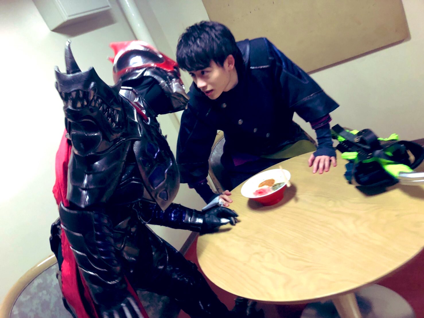 Ultimate Bahamut is a really cool design. Basically turning Emotional Dragon all black with gold is really cool. Also him dual wielding the Xross Saber and Kaenken Rekka is cool. There's also Kamen Rider Tassel! Farewell Kamen Rider Lupin, you will be missed! But you made a pretty cool kitbash in the end so I can't feel too bad. Also I really want them to release Tassel Dark's book, those jingles are too great to just be stageshow exclusive. Not much to really say about this stageshow but I do love that the Book Club once regaining their senses are like "Yeah we're just helping the heroes". Also fun fact. There were a total of three Desast Walks that happened with this Final Stage. So excuse the next few posts but I do kind of want to keep these separate in a sense. Desast Walk EX01: "Hello, humans. I'm Desast. Long time no see! I've been through a lot, but I'm back now. But this city smells sweet and black, decadent and luscious. It's called Takoyaki? That's not bad." |
