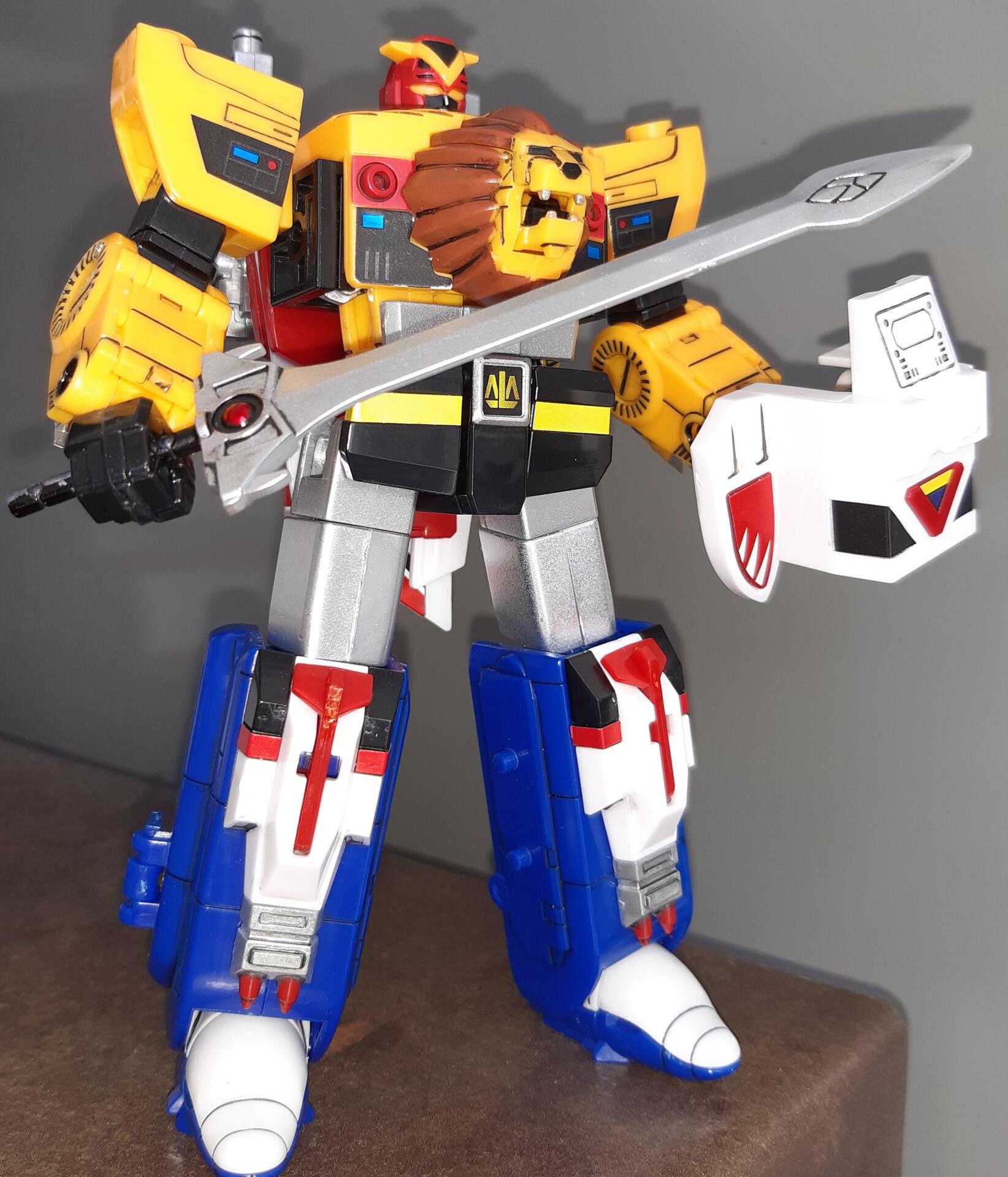 The red robot transforms just as bad as the Muteki Shoguns. The circle stickers on the hands are terrible and difficult to replace with paint. A chrome marker on parts of the bear make it excellent. It's been a while but I remember the falcon being a cool build.