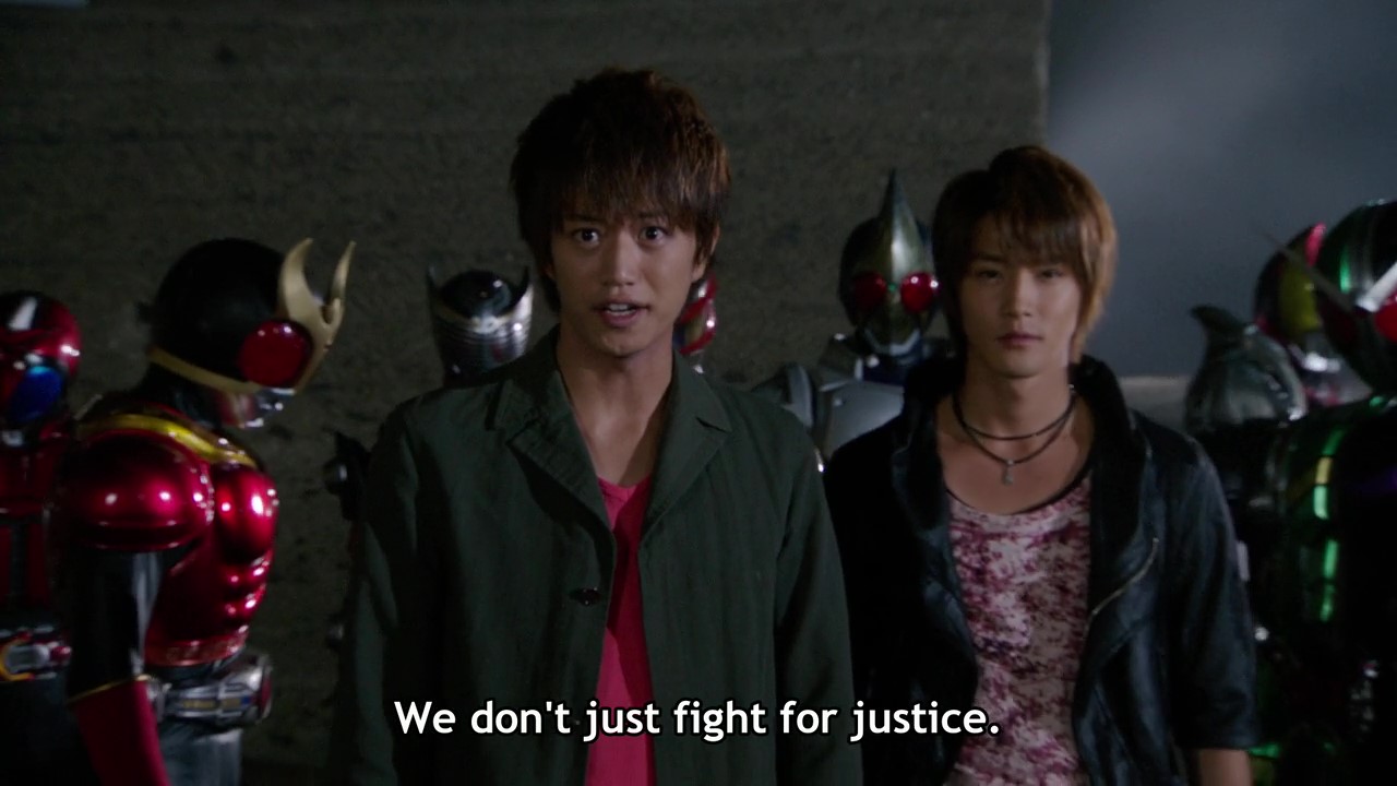 I think what sets Kamen Rider apart from other super heroes is the acknowledgement that the ideology of "Heroism" and "Justice" can be corrupted and misappropriated for evil. In the height of WWII, every participating country had their heroes, but it wasn't until it ended that those same heroes were now war criminals on the basis of having lost the war. You win the war, you become the heroes through control of the narrative.