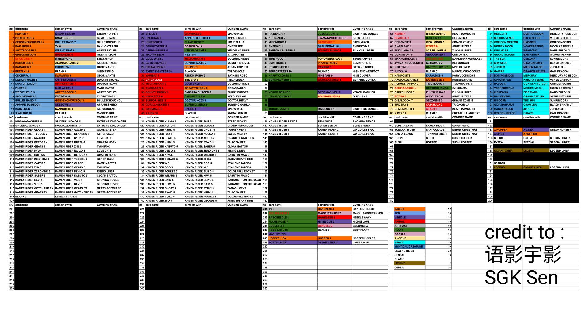 This chart pretty much has most of the forms in Gotchardriver sans whatever the attachment slot does with driver.