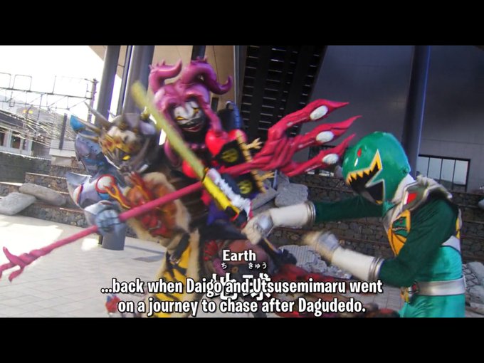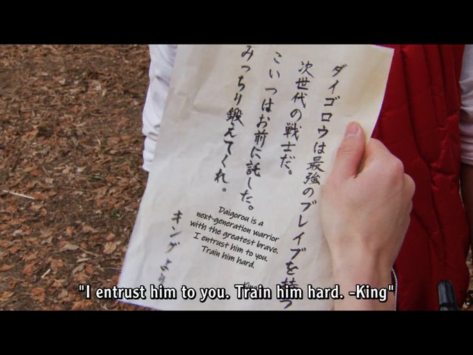 Androzani?s Tsukai Detour (Wait, that seems familiar somehow) And I ended up ?not? getting Fish Sandwich, so instead I?m dedicating to him my review of? Ohsama Sentai King-Ohger vs Kyoryuger (Or, Utchy and Prince?s Great Adventure, or Zyuden Sentai Kyoryuger 10 Year Anniversary Carnival, feat. King-Ohger) So I already explained who the main Kyoryuger lineup was back when I reviewed Kyoryuger vs Go-Busters, so here?s a discussion of both who appears here, but not there (along with whoever from King-Ohger wasn?t in VS Donbrothers) Kyoryugers: Ramirez/KyoryuCyan: In life, Ramirez lived during the Dark Ages 500 years ago. He was called upon by Torin to become KyoryuCyan and partner with Ankydon in order to fight, and eventually destroy, the revived Debo Monster Debo Viruson. Having died in battle, Ramirez lingered on as a spirit which was connected to Ankydon's Zyudenchi. In the present, Ramirez appeared before Torin to present the Kyoryugers with Ankydon at the same time Debo Batissier was attacking. He soon joined the Kyoryugers in their battles as an occasional ally, but with his spirit energy significantly drained, he was forced to pass on Ankydon?s power to Yuko Fukui, as he travels to Deboth Hell to assist Torin in destroying the Debo Spirits within the dimension. Tessai/KyoryuGray: He is the Clashing Brave (激突の勇者 Gekitotsu no Yūsha) and was the first Kyoryuger in existence, being active 1500 years ago in China. He was from a martial arts clan that mastered the Iron-Shattering Fist (鉄砕拳 Tessaiken), and has emerged into the present day as a Spirit to teach the Kyoryugers said technique and strengthen their bodies. His signature finishing move is the Furious Bash (激烈突破 Gekiretsu Toppa) technique. He arrived to give an announcement to the Kyoryugers: his partner Bunpachy has awakened and has been waiting for so long to join them. But, he would only let them have Bunpachy on the condition that they become stronger through his trials. He used the power of the Guardians to test the core 5 Kyoryugers (Utsusemimaru did not participate, for he was able to improve himself in battle before Tessai's arrival) and their specialties; Ovirappoo was used to test Ian's marksmanship, Igeranodon was used on Nobuharu to see if his sense of humor gets in the way of his super-strength, Archenolon was used on Souji to test his swordsmanship, and Gurumonite was used on Amy to see if she can concentrate on her kicks. In the end, they all learned from the experience Ian learned to shoot on instinct, Nobuharu learned to focus on the task instead of joking, Souji overcame the gravity field and improved his form, and Amy used the dizziness to perform spinning kicks. Daigo had the hardest trial of all, with every effect the others had individually piled on him all at once. However, the result of the training was a huge disappointment for Tessai as only Daigo could not harm Debo Nagareboshi, even though he completed his trial with almost no effort. After the enemy fled, he regarded the Kyoryugers with pride, explaining that his colour grey has a meaning; the ashen colour of grey is a perfect mixture of black and white (yin and yang), and that the Kyoryugers have now learned this lesson, save for Daigo. Burning in anger, he threw Daigo and aggressively told the others to not help him before performing a Ki attack on him. Tessai then told Torin to remove Daigo from being KyoryuRed and chose Utchy as the new leader. He stated the reason why Daigo cannot win is because he is already strong and does not have a weakness, which is important to have so people can become stronger. When Daigo asked how he is supposed to find his weakness, Tessai simply replied that he did not know or care. Tessai departed, leaving Daigo with his injuries. Daigo was hospitalised, but left even with his injuries. Tessai used this chance to attack Daigo, telling Daigo to meet him in the Twilight Forest if he wants to redeem himself. Daigo accepted and travelled to the forest. Tessai challenges Daigo using a multitude of illusions. Once Daigo and Tessai met face to face, Tessai told Daigo that he is not getting stronger because his fearlessness was holding him back. He made a wager with Daigo; if he can even scratch his "notoriously hard head", then he will release Daigo from the illusions and let him resume his duty as a Kyoryuger. Tessai attacks Daigo with his "Furious Bash", which knocked Daigo into the rivers. A fisherman convinces Daigo to fight by making Daigo realise how foolish his fearlessness truly was. Daigo and Tessai fought head on until it reached the point where they used the same technique against each other, Daigo finally putting a small crack in Tessai's helmet. As per their agreement, Tessai released Daigo. When Kyoryuzin fights Debo Nagareboshi, the fisherman appeared and revealed himself to be Tessai (sporting a bandage where Daigo's attack hit), and transformed into KyoryuGray. He then entrusted the team with Bunpachy, allowing them to form Kyoryuzin Kung-Fu. After Kyoryuzin defeated Nagareboshi, Tessai returned to China, where Ramirez was waiting for him. The two discussed the final two members of the Ten Great Zyudenryu; Plezuon and Bragigas. Tessai said that while Plezuon would be returning very soon, Bragigas would be a challenge, and offers to help in the search. With that, the two departed to find the final Zyudenryu. While replenishing his spirit, he found the author of Love be Ball Touchdown, Shinya Tsukouchi, whom he deduced was his descendant, going by their similar physical appearance. Tessai became upset with him due to him asking Amy to pose as Yuu Aoyagi (Shinya's pen name) to visit a sick fan (who, unbeknownst to any of them, was actually Luckyuro), thinking he was not being honest to his fan. Tessai later appeared to Shinya posing as a ghost, coercing him to visit his fan. While Shinya was on his way, he sees Beautiful Zoreamer attack a woman and stepped in to save her as Tessai, convi