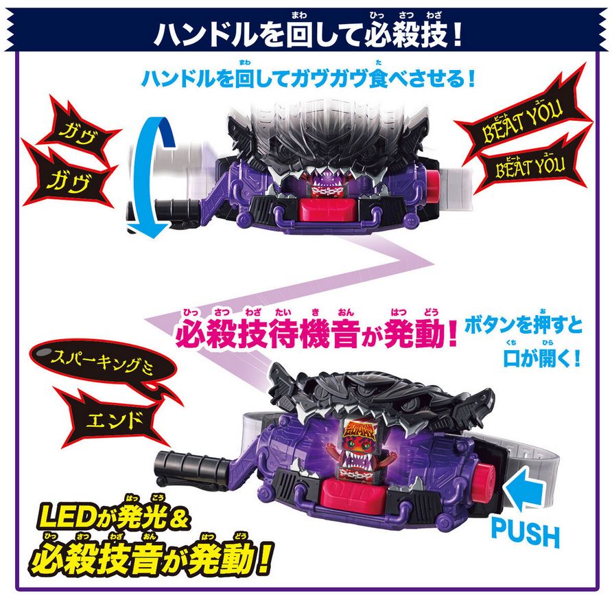 Toy pics are out: DX Henshin Belt Bitter Gavv, Sparkin Gummy, and Vrocan Spicy Gochizos. Along with DX Bitter Gavv Blade + Bakibaki Stick Gochizo.