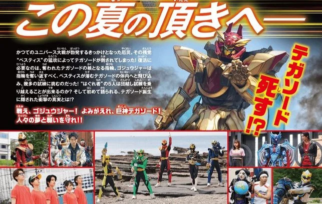 Plot Sypnosis A remnant of the Calamity that caused the Universe War. Under the fierce attack of the powerful new enemy, Pestis, Tegasword was defeated! What is needed for Tegasword's revival is the the stolen ring that act as its core. In order to take back the ring, the Gozyugers enter into the body of Tegasword, in which Pestis has hidden himself! They will face countless trials! Can the five chosen ones unite and overcome the trials? And what is the shocking truth behind the birth of Tegasword that is revealed for the first time? ! |