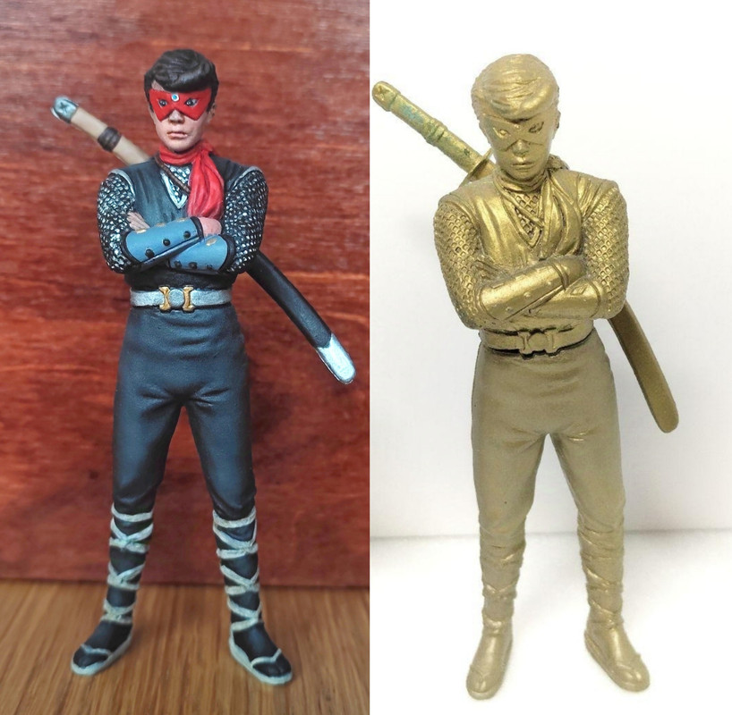 I’ve always loved Akakage’s retro design, and I wanted to buy a figure of the hero for my collection. The brand Epoch released several gashapon figures a few years ago, in both gold and color versions, but unfortunately the painted ones are ridiculously expensive. So I went for the gold version and decided to repaint it entirely with acrylic paint. The figure was painted using both an airbrush and regular brushes, mainly with Vallejo paints. I finished it off with a matte varnish to protect and unify the paint job. I tried to be as meticulous as possible — the chainmail on the arms was an absolute nightmare to paint. In the last photo, I included a comparison with a commercially painted version. I hope you like the result! And I can’t wait for the first episodes of Takashi Miike’s version to be released! ![]() |