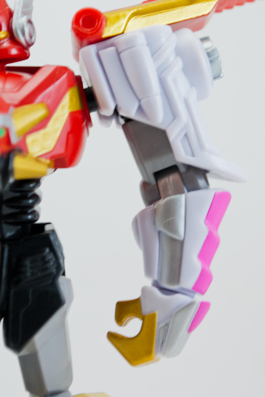 Bandai of America's line of articulated, 6-inch Megazords continues into 2013 with the release of the Gosei Great and Gosei Grand Megazords. While not officially packaged as 'Retrofire' figures, these two possess the stylized design and high articulation of previous releases in the line. The Gosei Great Megazord stands about 6 inches tall and has 20 points of articulation including 5 in each arm, 4 in each leg, a waist that can turn 360 degrees, and a ball-jointed head. There is a lot of sculpted detail on the figure and only some parts lack paint applications. Gosei Great comes with it's signature sword that can be held in either hand. Overall, this mini Gosei Great is a grand figure that takes the retrofire formula from figures past and improves upon it.