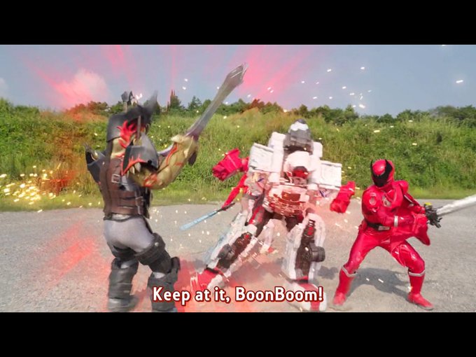 Androzani?s Tsukai Detour And today, we?re going to be getting explosive with? Bakuage Sentai Boonboomger vs King-Ohger On the day of her forced marriage, Mira Shifuto finds herself instead being abducted at the altar by a handsome man in red with a cool high-tech convertible. He explains that he is Taiya Hando, a high-stakes delivery driver, and Mira?s boyfriend has hired him to rescue her. Mira's erstwhile groom and his associates are destroyed while chasing them when the Great Space Invasion Running Team Hashiriyan, an interplanetary mafia, arrives to conquer Earth. Inspired by Taiya?s defence of her as Bun Red, Mira asks to join him as part of his team of delivery specialists, Bakuage Sentai Boonboomger. Boonboomger Taiya Hando/Bun Red: The Courier. As a child, he heard one of his classmates screaming in pain, and was unable to do anything to help. Thus, he made it his life?s mission to reach out and help anyone by running to them when they were screaming. Shortly prior to the series, he met Bundorio Bunderas and after learning that he?d been banned from the Big Bang Grand Prix, decided to devote himself to winning the race on his behalf. Taiya is a master of development and modification. He works as a "delivery man" with the cars he builds. When he likes a person or a thing, he says, "I love it! or "I bought it!" He has the ability to see things for what they really are, and he has a strong competitive instinct that leads him to make quick decisions and quick judgments. Even if there is a risk, he is the type that says, "Isn't it better to take the risk?" He is adept at using both rods and guns and is good at creative fighting according to the situation. Ishiro ?Shashiro? Meita/Bun Blue: The Informant, who acts as the second in command of the Boonboomgers. Ishiro Meita was born into a family of spies and trained to become one for as long as he can remember. Later in life, he enrolled in an espionage academy and graduated as its top performing student and began working as a freelance spy, with most of his clients coming from clandestine organisations. Two years prior to the series, his services were hired by Eiichiro Tokoyari, who wanted him to investigate an unknown object that recently fell from space and came into the possession of Taiya Hando. Infiltrating Taiya's estate, he was caught in a trap set by the former and come to discover the object Taiya recovered to be Bundorio Bunderas, the two told Ishiro their shared dream of competing in the Big Bang Grand Prix and Taiya would come to hire him as his informant. Since then, Ishiro would maintain regular contact with Taiya and would take on outlandish delivery jobs when asked. Ishiro is an "informant", a master of information gathering. Usually a freelance spy. He always considers risks and makes calm decisions. He is meticulous and cynical. He basically approves of Taiya's decisions, and fights alongside Taiya as if it were a "job he had contracted from Taiya". He has excellent dynamic vision and is good at precise movements. When he uses a gun, he is a one-hit wonder. He doesn't approve of anyone he is not close to using his nickname "Shashiro". Mira Shifuto/Bun Pink: The Driver. She joined the Boonboomgers after realising that she had no control over her own life (having to be rescued from a forced marriage by a man her boyfriend hired). Mira is a "driver", an expert in driving and maneuvering. She usually works part-time at various stores. Her pedal work technique is so good that both Taiya & Ishiro are amazed. She is a mood-maker and a troublemaker. After meeting Taiya, she began to show her true core strength. She fights intuitively with her unique sensibility. While usually a friendly and easygoing sweetheart, Mira has a hidden scary side when she is angered, going into a violent fury against villains who humiliate or imprison her that will not let up until they are defeated. She even in rare instances directs that anger towards her teammates if they get in her way during battle. Jou Akuse/Bun Black: The Policeman. Initially an ordinary officer caught up in the Hashiriyan?s attacks, he was appointed by the ISA?s Saibu Shirabe to act as the liaison between the Boonboomgers. As the contact point, though he expressed the desire to join the team as a Boonboomger, he was quickly rejected by Taiya. While processing the rejection, he saw a Kurumaju, alerted the team and worked to to help the people involved, allowing them to escape, and leading the Kurumaju to a warehouse, he was overpowered but the team arrived in time to help him. After demonstrating his determination and giving a satisfactory answer to why he wanted to be a hero, he received the Boonboom Change Ax, allowing him to transform into Bun Black. Jyo is a "policeman", a rookie cop who is passionate about justice. He usually patrols the town on his bicycle as a uniformed police officer. He is a serious and aggressive person. He is more rigid than flexible, and is confident in his physical strength. Much to Ishiro?s surprise, he is genuinely hot blooded and passionate about protecting the town and befriending the citizens. Genba Bureki/Bun Orange: The Suppiler, real name Genbard De Livery II, heir to the throne of Planet Bureki. Forcibly exiled from the planet after the Hashiriyan took it and its delivery lanes over, he escaped to Earth where he discovered thanks to Taiya that he could maintain a human disguise by consuming regular sugar intakes, and decided to join him in supplying various items he needed both for the BBG and as a Boonboomger to battle the Hashiriyan. After seeing the Boonboomgers had grown to the point they didn?t require his services, he chose to step out of his ?VIP seat? and use a second BoonBoom Change Ax to become Bun Orange and live Taiya?s dream with him. Genba is a "supplier," a master of procurement. He is a man who can be relied on to procure what he needs from anywhere. He has a gentle and soft manner. He is elusive and never shows his true