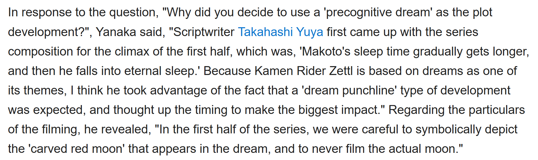 Also (forgive the machine translation) but turns out the crew was very careful to not film the moon at any point in the "real world" during the first 24 episodes of Zeztz as it would've given the twist away immediately, which implies this that this was always the direction the show was building towards right from the start, so that's neat. |