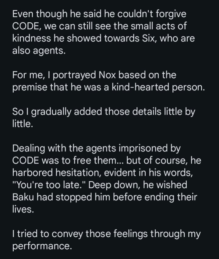 A piece from an interview with Nox's actor Yuki Furukawa in the recently released Zeztz character book "secret mission in a dream".