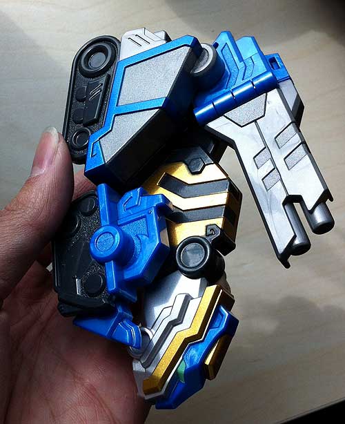 Man, that thing looks beautiful! Really, it does. They are so well designed. I saw an episode of the series and I gotta say, Im impressed. The suits and fight scenes are entertaining and very well choreographed. Anybody know where to get the DX mecha?