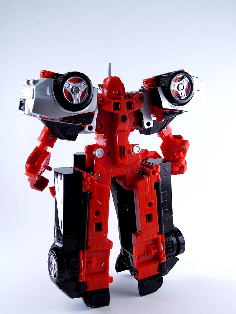 For some reason he reminds me of Speedor from Go-onger. Maybe it's the red with the face on the front.