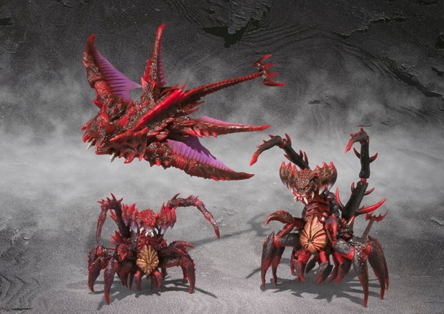 The Destoroyah Evolution Set unfortunately includes no known effect parts, but still accessorizes well with the Destoroyah Final Form coming to Japan in February, expected in the US in March. The set includes three different stages in the growth of the Precambrian crustacean - a less-developed Crab, the infamous Aggregate Form which fought Godzilla Junior in the film, and the rarely-produced-in-plastic Flying Form which preceded the monstrous final form. All three figures are appropriated scaled to their final form as well as prior releases Burning Godzilla and Godzilla Junior and will be available in June at a cost of 8400 yen according to both the earlier scans and the Tamashii Web listing. Bluefin will be releasing the Destoroyah Evolution Set in North America as announced mere minutes ago on their Facebook page with pricing and date to be determined. For all of your giant crab monster toy and other tokusatsu news, stick with us here at TokuNation.com!