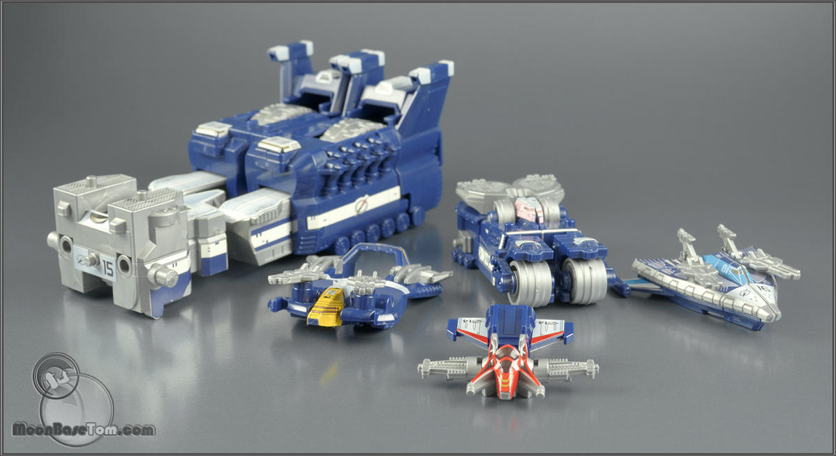 Chouzetsu Gogo Gatti! Here is a gallery of the 3rd and final Machine from Gogo Sentai Boukenger, the Daivoyager! A massive battle carrier that also changes into a robo. The candy toy Daivoyager is proportionally smaller (to the other figures) than it's DX counterpart, but makes up for it with articulation.