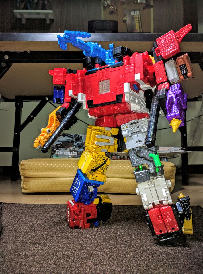 ![]() ![]() ![]() ![]() Here's the rest of the official pics, sorry about the watermark writing Both dodekai-oh and wild tousai dedaka king look to have a seam at the hips that would allow leg movement forwards and back, or it could just be from assembly and they're static. It's not a great angle but the plates for the knees in boxes 2 and 6 don't appear to allow for movement, nor do the ankle parts in boxes 1 and 6. A little disappointing if the legs do turn out to have no movement but this looks leagues better than the DX anyway so I'm happy with it |