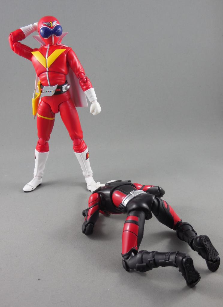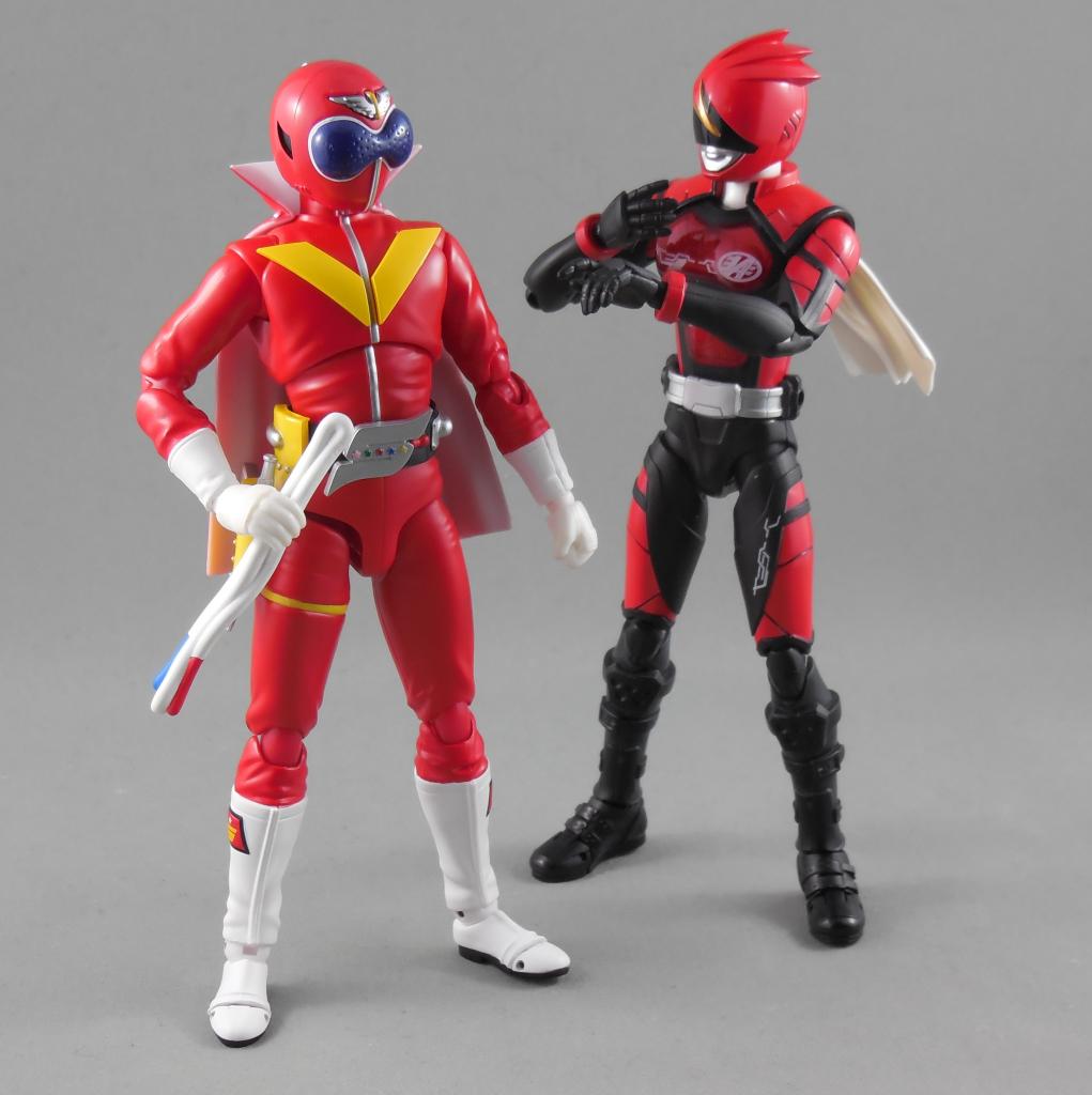 Akaranger. Great sculpt, paint job, and overall execution. Terribly out of scale, even with other sentai SHF's. He's just huge. Enormous head and hands especially. Sad that you have to change the holster out to give him an empty holster and an entirely separate gun. Why no full functioning holster Bandai? Bio Rider- nice enough but a fairly average figure. Sculpting is top notch, very much looks like a suit made in toy form. Legs suck for articulation though. Kachidoki- great looking figure. Seems nice so far, could see the hinges on the armor flaps loosening or even breaking over time though. But good QC for the most part. The head feels a bit too large to me, but that may just be me And as a side note (I know he's not toku) Iron man MK 42 with couch. 42 looks great, very very tight joints. Mine has several areas that appear to have been scuffed at the factory and painted back over in the wrong shade of gold though. Couch is pretty weak even for a bonus.