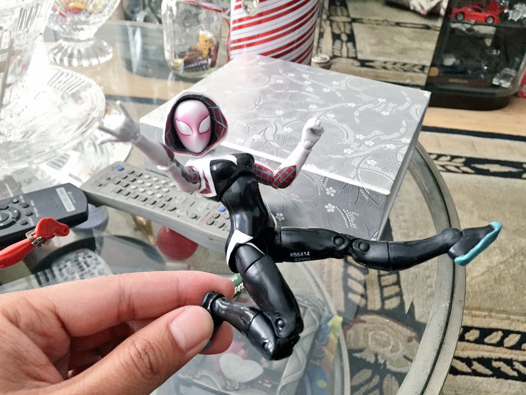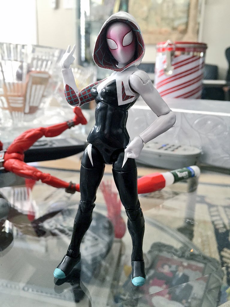 ![]() ![]() ![]() ![]() Also shaved some pieces of plastic off SpiderGwen's hips and abs so she could have more range of motion- ![]() ![]() ![]()