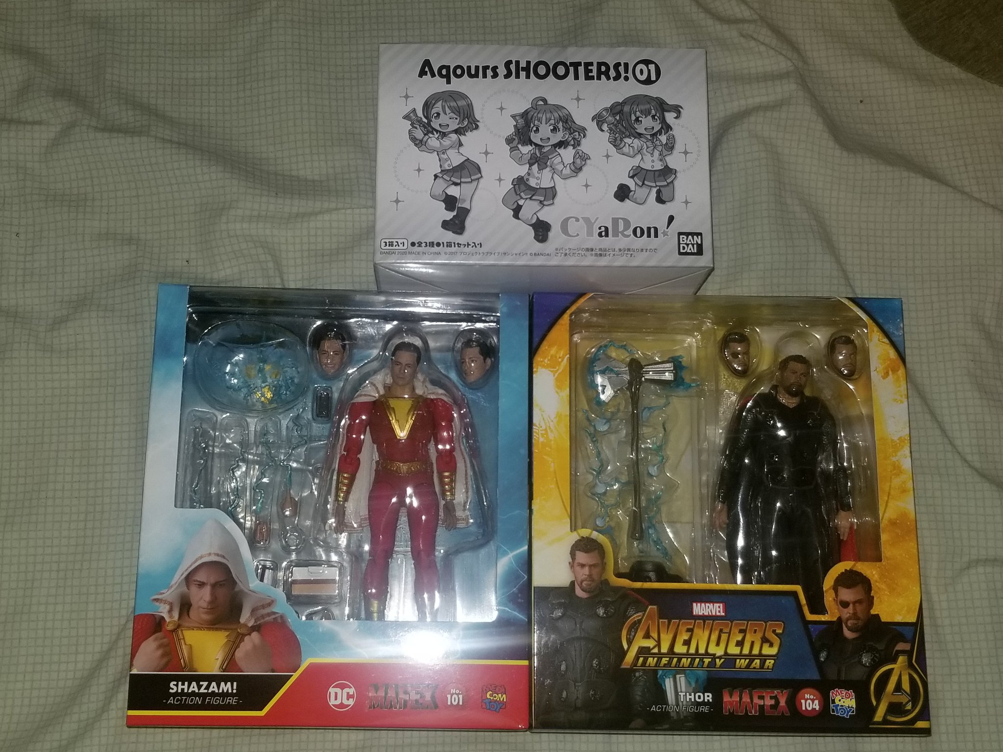 It's June, but I got my May order from Amiami. - Mafex #101: Shazam - Mafex #104: Thor - Aqours Shooters Set 01 (CYaRon) |