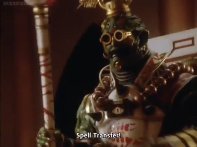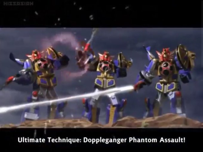 This episode opens with Nanami once more doing her Enka act, and receiving increasingly less attention for it. To the point she blows it off, much to her manager’s consternation and returns to base just as Yosuke and Kouta are asking why their last battle wasn’t on the news (Remember that. It’ll be important later). Hamster Headmaster then instructs the three to investigate people who’ve started acting out of character, examples including a little girl pulling up flowers she planted with her friend and a boss destroying his own office (you know it’d be he disgruntled employees doing that normally). The only link is, coincidentally given Nanami’s dreams of stardom, a tv station. As our heroes go to investigate, we cut to the Centipede, where Sargain and Furabijo are ready to write Chuzoobo off as a failure for apparently doing nothing. (Typical Sentai villain fare, really) Then Tau Zant and Wendinu reveal that he is working on a plan, but instead of overseeing it personally, he’s searching through Jakanja’s trash for something. We then cut to the studio, where our three legendary successors search around, with Nanami coming across the famous music producer Yagi, who just so happens to be in charge of the type of acts she wants to become. (Have I mentioned Furabijo is there?) Yagi-P then decides he wants Nanami in his category for The Voice Japan over someone who showed up to audition (what a dick). As Nanami goes in and starts singing a song I haven’t been able to find the name of (it seems to be a more upbeat version of her usual enka song), the mic creates a copy of our Blue Heroine and sucks the real one inside. This turns out to be Chuzoobo’s latest plan to corrupt the planet and find “that”: replace everybody with evil doppelgängers while the real ones are trapped inside the microphone. (How this helps is left as a riddle for the ages). Since the Hurricanegers have shown up, Furabijo decides to have the fake Nanami scout them for the fake Yagi-P. Meanwhile, Nanami ends up with the originals, including Yagi-P, the office boss and the little girl among several extras, inside a pocket dimension. They then see Yosuke and Kouta fall for fake Nanami’s offer to let them sing and fake Yagi-P calling them good (the real one doesn’t think they’re that good). Nanami tries to change into HurricaneBlue as discreetly as possible (read, telling everyone to cover their eyes and ears), only to find that she can’t do that in here. And to add insult to injury, Yagi-P calls her morph call too old-fashioned (I take it back, he’s more Simon Cowell than a Voice judge). So Nanami instead escapes by using her water ninpo to rocket out of the mic. The mic then transforms into our monster for this episode, Copy Ninja Kuriottsebo (I have no idea if I spelt that correctly) (Yes, that is the best picture I could find of him) After a commercial break, Nanami confronts her doppelgänger, who uses the Shuriken feature on her Gyro to attack, only to fall for the empty costume trick and get captured in a harpoon. As Yosuke and Kouta transform to fight Copy Ninja (that’s what I’m calling him for the rest of this post), Nanami transforms and destroys the fake with her Sonic Megaphone (why couldn’t she do that before?) As the three Hurricanegers reunite, Copy Ninja summons the Megarappas to aid him. Since they’ve already blown the budget on Nanami vs Nanami, we instead get a new Chou Ninpo: Kage no Mai (Dance of the Shadows) (Get used to this. It becomes a regular thing) After Copy Ninja turns out to be too fast to hit, Nanami traps him underwater so she can hit him, before they form the Triple Gadget with the Sonic Megaphone up front. This blows Copy Ninja to pieces, while everyone he captured returns to reality as their fakes vanish. Before Furabijo and Sargain can continue what they started earlier, Chuzoobo shows up with what he was looking for: the lost ancient Jakanja spell (what the heck was it doing in the trash?). Chuzoobo then proceeds to place it on a scroll, giving an ominous hint as to its effects. (This is starting to look familiar) Chuzoobo then gives Wendinu the scroll, who then proceeds to fire it from a Bazooka she just happens to have. (This is getting more familiar) (Ah yes, the Scroll of Empowerment from Ninja Storm. Now to get a bit off topic, but I’m very partial to shows that give every general their own army with its own motif [Metalder, Black RX, Bee Fighter, Gingaman, Boukenger, Go-Onger, Goseiger and Kyoryuger come to mind], so I’m even happier that this one is giving them individual growth methods). The Hurricanegers then summon the Shinobi Machines and combine into Senpuujin. But Copy Ninja’s abilities and speed prove too much for them. Cue Oboro. It turns out that Senpuujin can “hurry up” into a faster form for only 60 seconds. So they do exactly that. (This exists purely to promote a non transforming, undetailed release of Senpuujin, now available at all good ToysRUs in 2002) And then this music plays as Senpuujin Hurrier proceeds to whoop ass. And once Senpuujin “hurries down”, Copy Ninja is so weak that they kill him with their regular finisher. As Hamster Headmaster tells Oboro she knows what to do, our heroes wonder if they’ll actually be on the news this time. Nanami is approached by Yagi-P, who decided after seeing her as HurricaneBlue that he wants to represent her and it all seems like a happy ending for our heroes… Lol, no. Hamster Headmaster sends out a team of robot Kuroko to go around and wipe everyone’s memories of the Hurricanegers. (beating both Shinkenger and Goseiger to their respective punches) Thus, Yagi-P forgets about Nanami. But it’s not all bad, as she vows to get famous by continuing down her path of Enka (good luck with that). Our next episode, Drilling and Siblings, looks to round out our focus episodes for the cast by focusing on Kouta, in addition to introducing a new Karakuri Ball. Final Thoughts: