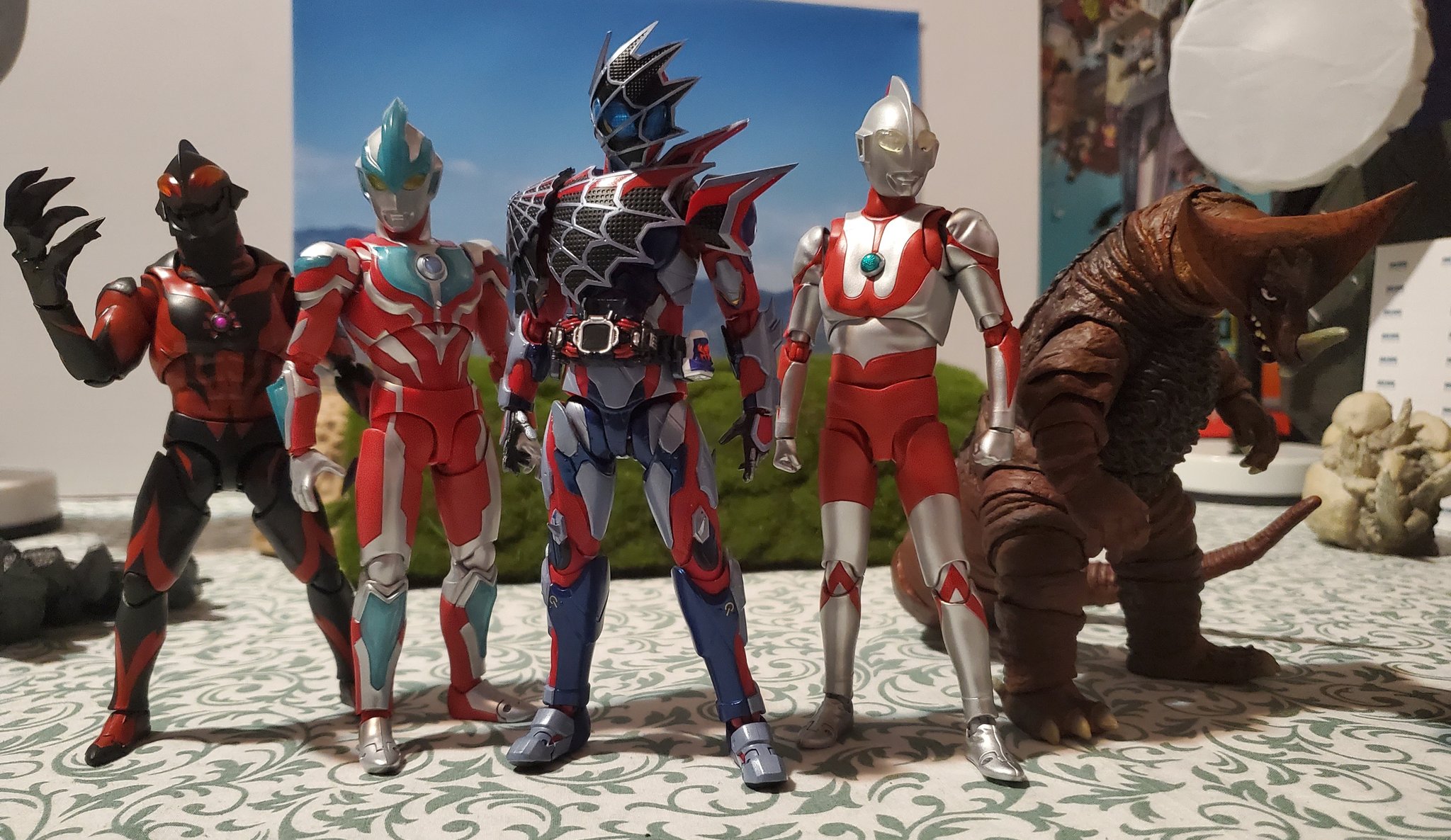 I just did a couple team-up pictures with some random figures I had lying around. If they are connected, it?s purely a coincidence, I promise. I love these ultraman figuarts. |