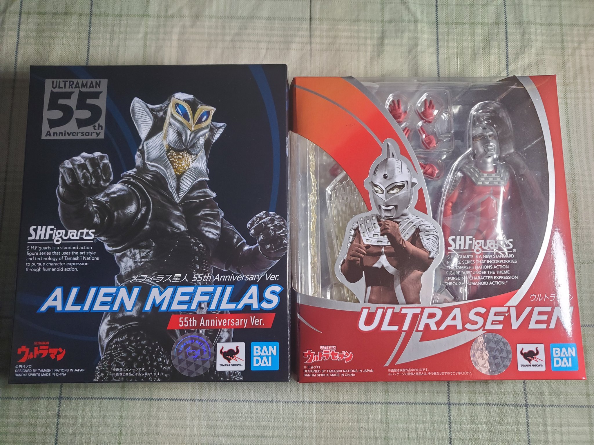 - SHF UltraSeven - SHF Alien Mefilas (Ultraman 55th Anniversary Edition) Latter was sealed in box, former was opened but Seven himself was never taken out of the packaging so he was basically new.