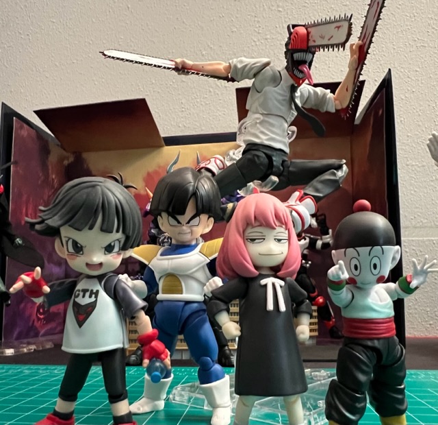 I?ve seen a lot of comments stating Pan?s head is way too big, and I think I agree. The figure should probably be more proportioned like the Anya or Chiaotzu figures I have included for comparison. Why isn?t pan proportioned like Anya? Would they feel bad about charging $50 for a figure the size of Anya? Lol? Is that why they made Pan?s head way too big? It?s definitely weird to have Pan posed next to Adult Gohan, and her head is bigger than his. |