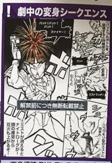 ...am I reading this image wrong or does Nitrouge really henshin by shooting himself in the head?