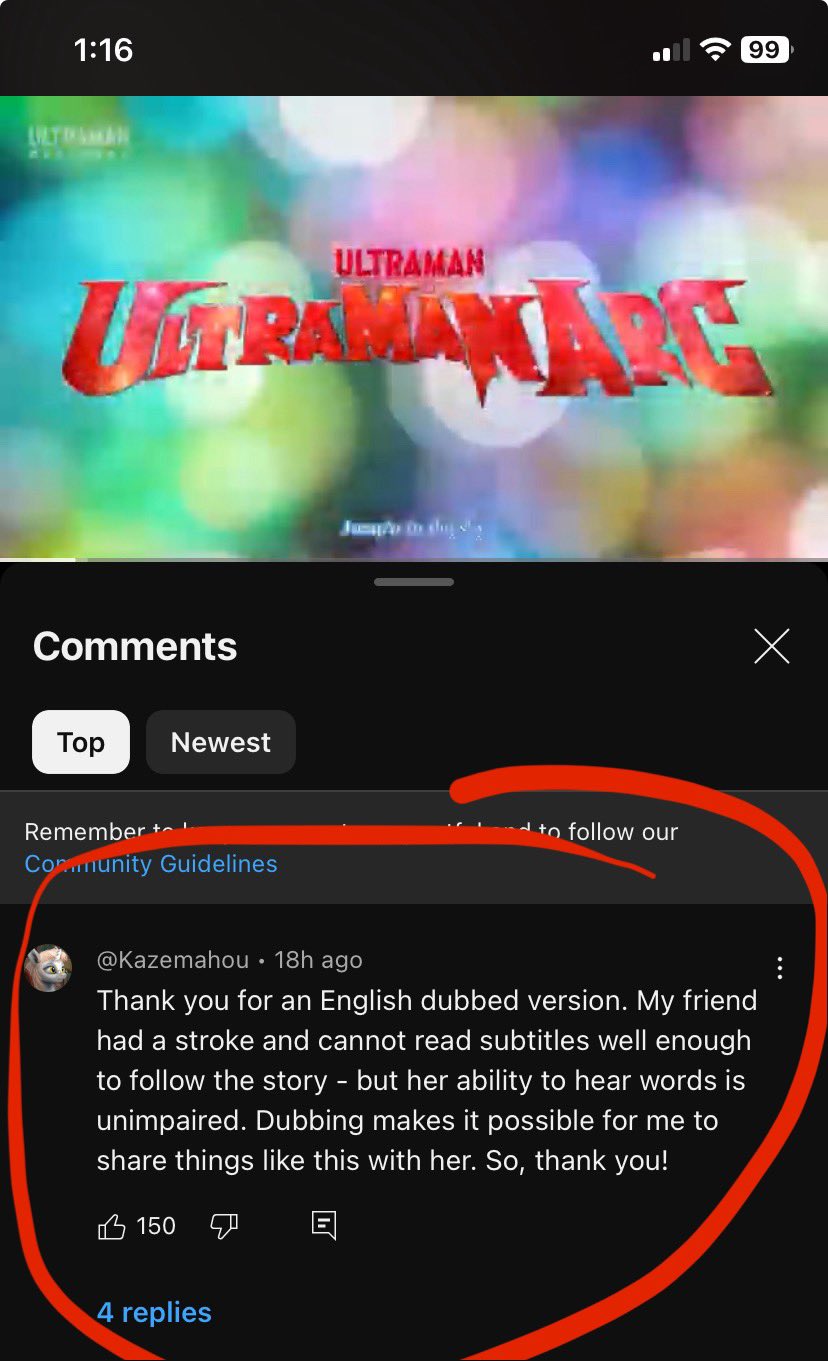 On the subject of subs only though, I do think if you want Sentai to reach more people and gain a wider footing in a global audience... it needs to be dubbed too. I mean specifically in the style of the recent Ultraman Series dubs (Shin, Z, Blazar, Arc). Sometimes people just can't jive with subtitles and need something in their actual language. Or they have medical reasons. ![]() While I absolutely understand that live action dubbing is a bit odd for some people, I think it should be considered an option when importing these shows over. Plus, they've done some good work with the dubs we have had. |