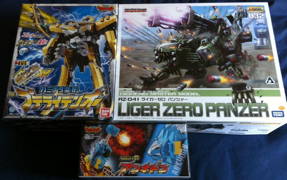 A new t-shirt from forhumanpeoples.com 2 Gokai Machines + 1 Gao Animal from Mandarake Finally new Sentai stuff and the last model I needed to have all the forms of Liger Zero (Zero, Jager, Schneider, & Panzer). |