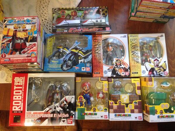 Figuarts Gaim and Baron with bonuses Figuarts Mario and extra sets Figma Kiritsugu Emiya ![]() EDIT: Ugh, apologies for the sideways picture. Can't seem to get it fixed.
