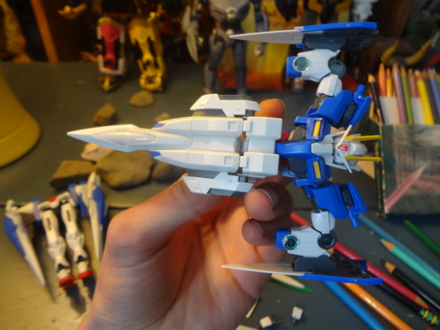 I was messing around with the 00 Raiser, and discovered that it would take very little modding to make it a transforming MS: