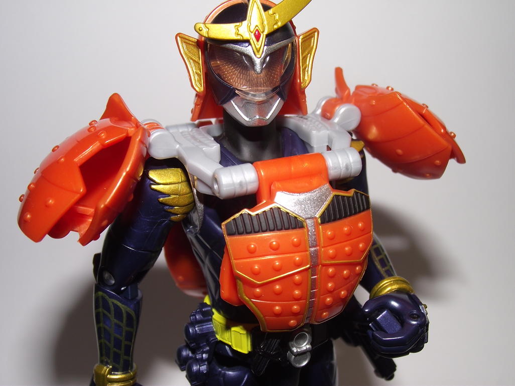 The armour doesn't peg down, but the joints are tight, and should they ever weaken, they're friction clip joints so you can stiffen them, but it's unlikely. It's a really good figure. Not super articulated, but good posability, and it looks nice. Sculpt is actually really good on the belt, the knife is even a seperate piece, though the locks are not given any specific details so you don't put pine arms on a Gaim with the orange lock on. Also the hand joints are tight. He doesn't feel like he's gonna drop his weapons constantly like my old SH Den-O figures. I'm quite impressed. I didn't no they did the gimmick figures this good. Quote: