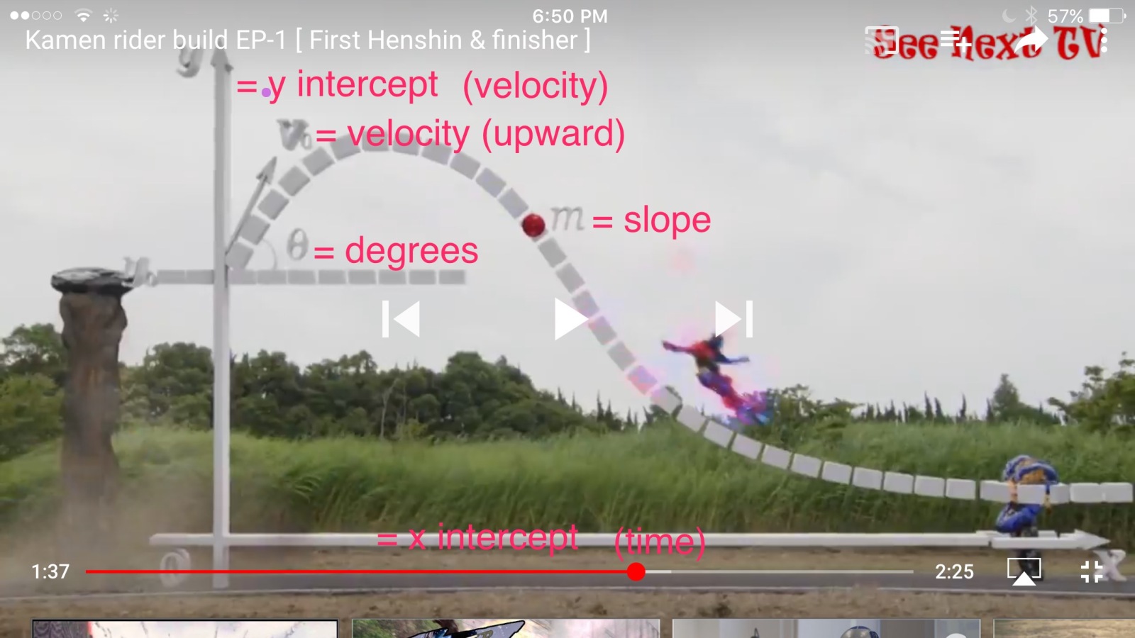 I think this is right, been awhile. Anyone looking for more/better info look up slope intercept and velocity.