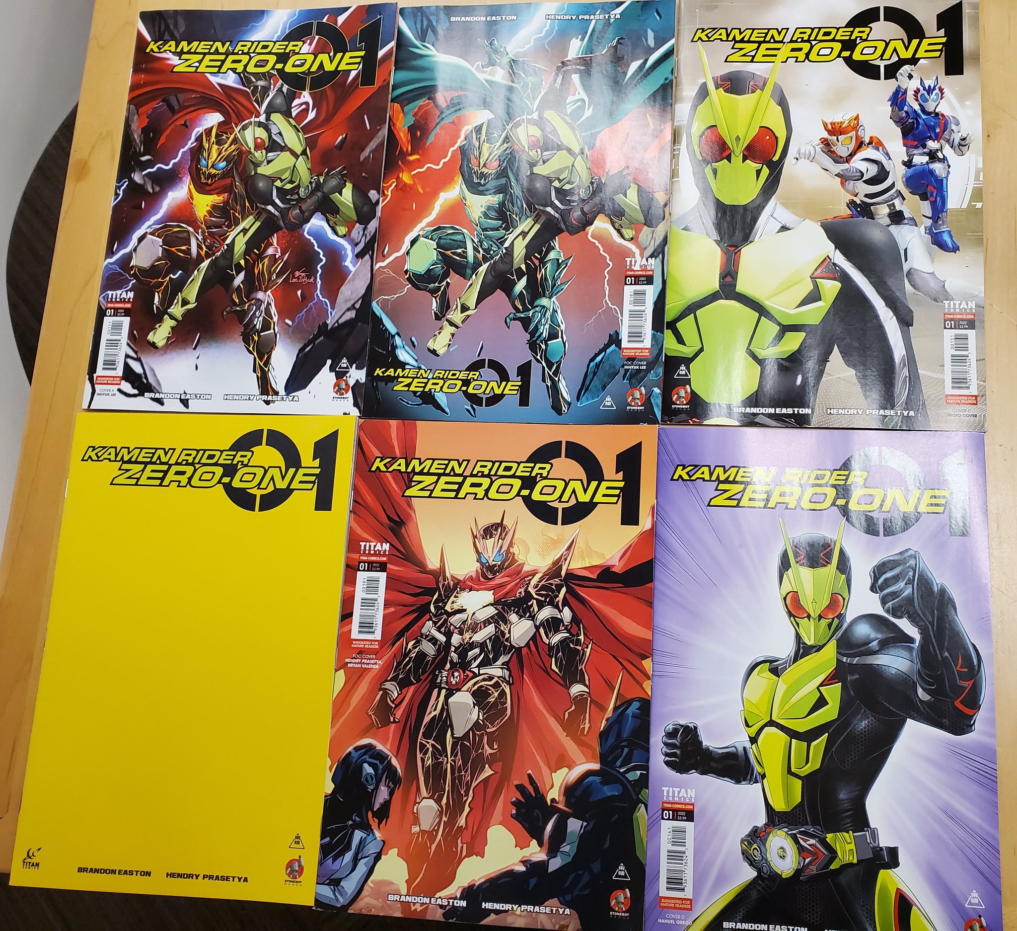 Stopped off at Midtown Comics during my lunch break and picked up issue one of Kamen Rider Zero One and whatever variants I could find for myself and a friend.