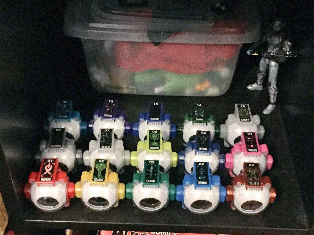 Anyway, I was moderately pleased to find that the SG Boost Eyecons aren't completely useless. I thought they were like Ikkyu, where there's nothing inside, but they actually have a fully functioning face-switching mechanism. It's just they use a filler piece of plastic instead of the actual piece with space for the stickers and everything. Not ideal, but usable to an extent. Maybe if I can find a way to cut off the flame horns without it looking like crap...kinda wanting to turn this into a Napoleon. Also, I love Gaim. Its colors are great, this thing is perfect. I was concerned the colors would look weird, but it's fantastic. I love it. It is making me seriously reconsider passing on the Legend Rider Set, because I want more Legend Rider Eyecons now. Alas, I am not made of money. Gaim is super sexy though. The candy toy Goemon and Ryoma are pretty cool. I wish Ryoma particularly was shinier, but they are both pretty good. I wasn't sure how I would feel about the flat stickers, but having in them in hand I quite like them. There's an added element of show-accuracy and it kinda makes me want to hunt down the rest of the Eyecons in SG form. I also gotta say, I much prefer the mechanism for the candy toys over the DX one. It takes slightly more force but just with that it just feels...better, somehow. It's nice, I like it. I also got the TV-Kun with Ikkyu. The magazine is pretty neat. I like the fact that it came with coloring pages, including some for Ghost. Incredible, really. The Ikkyu Eyecon isn't as bad as I thought it'd be. It's not great, but I don't hate it. The fact that it comes with two of the top stickers is a nice bonus, though. I'm thinking of trying to turn one of my leftover candy toy Eyecons into a proper Ikkyu... I should probably find a real way to display these. Last edited by barnstenchfartface; 02-12-2016 at 07:31 PM.. |