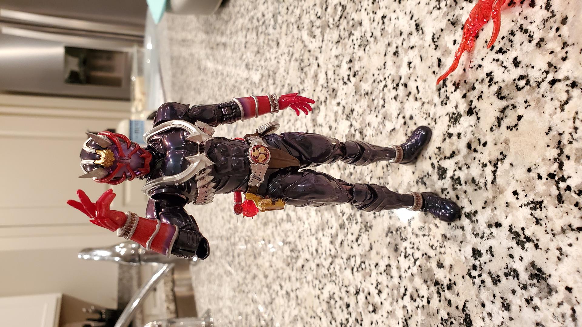 ![]() The specially treated plastic that composes his main body is stiffer and more brittle than your average model kit. If you use a hobby knife to clean up nubs, I recommend using this opportunity to swap in a brand new blade. I go over more details of the process in my build thread http://www.tokunation.com/showpost.p...5&postcount=71 Obligatory all rider shot: ![]() Hibiki is a fantastic kit, but the heavy organic elements may make him more challenging than you're used to. The level of precise detail painting is far above average if you're trying to minimize stickers. Den-O is perhaps still the best kit overall. From some angles, Hibiki feels a little disproportionate (namely his chest and thighs). But the finished product is absolutely gorgeous and he stands out from his peers in a big way due to his unique coating.