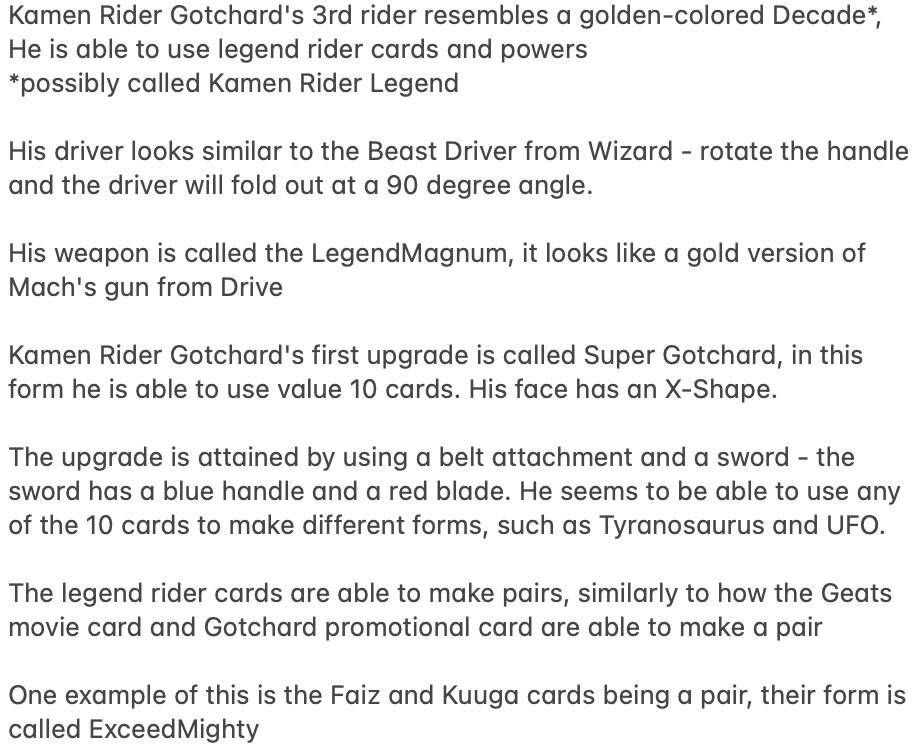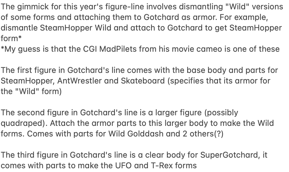 Alright guys here's some Gotchard toy leaks translated from 5ch (leaks come from someone called color), see images for details & again grain of salt.