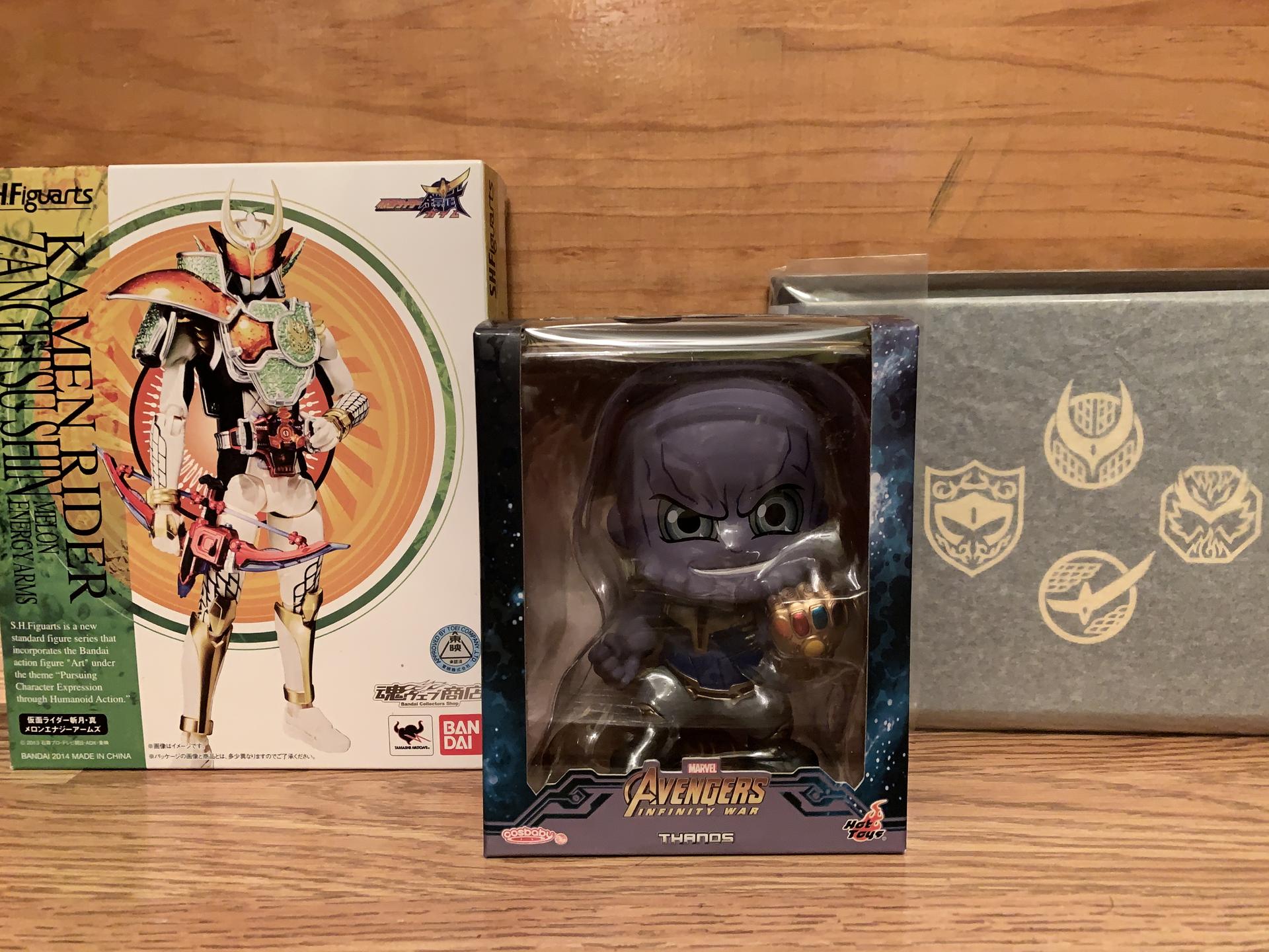 Couple awesome 3 3/4 inch Star Wars figures The bounty hunters are the real standouts And from Jungle: SHF Kamen Rider Shin Zangetsu Hot Toys Cosbaby Thanos 1st Issue SHF Gaim stage (holy crap this thing is huge) |