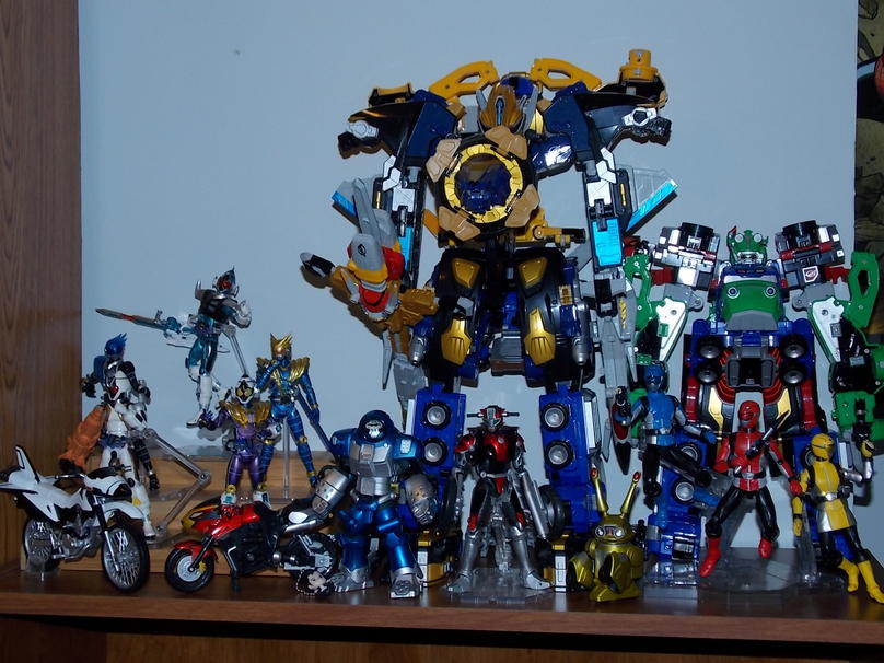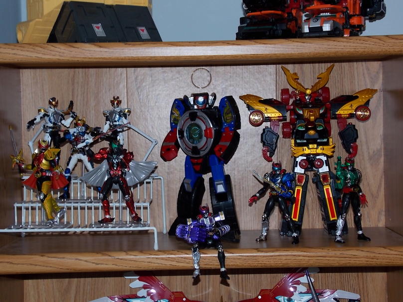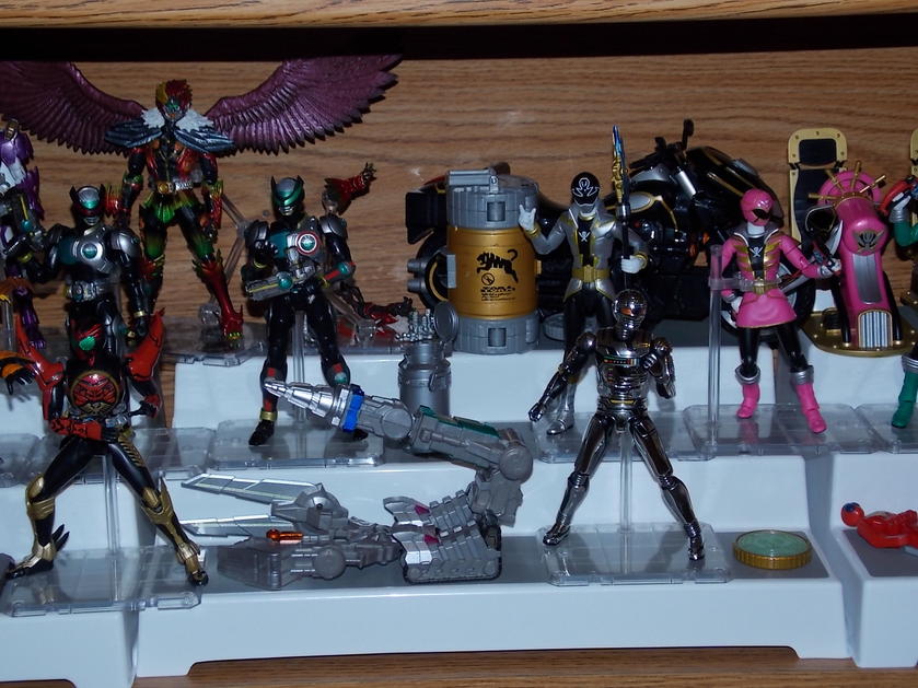 ![]() Be aware that I pose my stuff in Super Hero Time pairings. So Gokaiger/OOO, Shinkenger/Decade, Boukenger/Kabuto, etc. Also ALL of my stuff is BOJ releases. I don't take any BOA substitutes, the exception being the battle bikes on my 90's Heisei Sentai shelf. ![]() ![]() ![]() ![]()