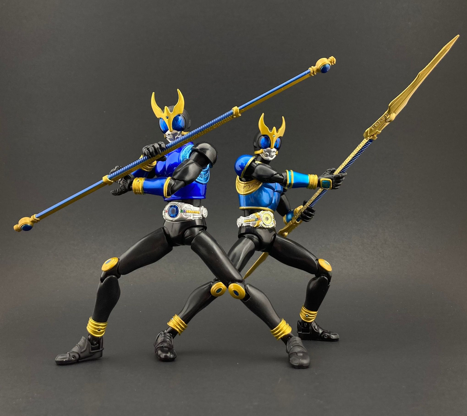 A couple of my new-yet-old Kuuga Figuarts. Sadly Pegasus' eyes are a bit foggy though I suppose I could swap the head for the Rising version when that comes. (I prefer standard Pegasus over the Rising version)