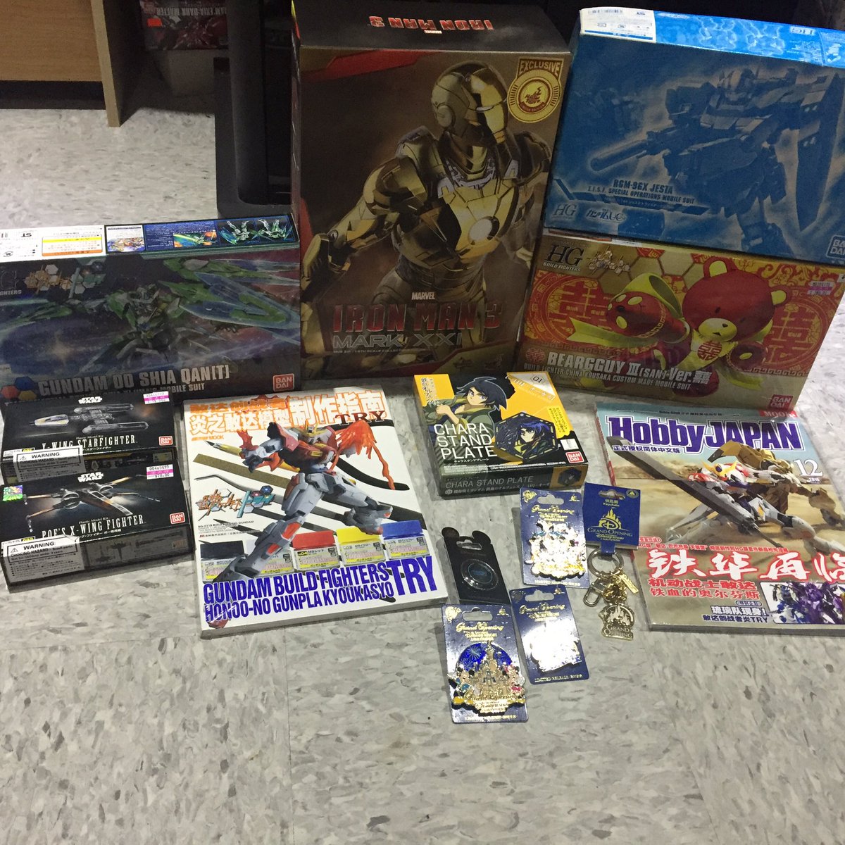 ![]() Got: HGUC Jesta Clear Version HG BearGuy San Ver 囍 HG Shia Quanta Micro Poe's X Wing Kit Micro Y Wing Kit Mikazuki Argus Chara Stand Plate Hono-no Gunpla Kyoukasyo Try Book Hobby Japan December Issue From Shanghai Disney: Hot Toys Iron Man Mark XXI Midas Armor ![]() Plus some assorted pins and key chains.