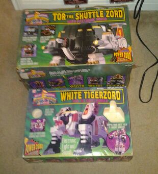 Buddy went to flea market and got me a MIB Tor The Shuttlezord and MIB White Tigerzord minus White Ranger and Gold coin. $25 total for both.