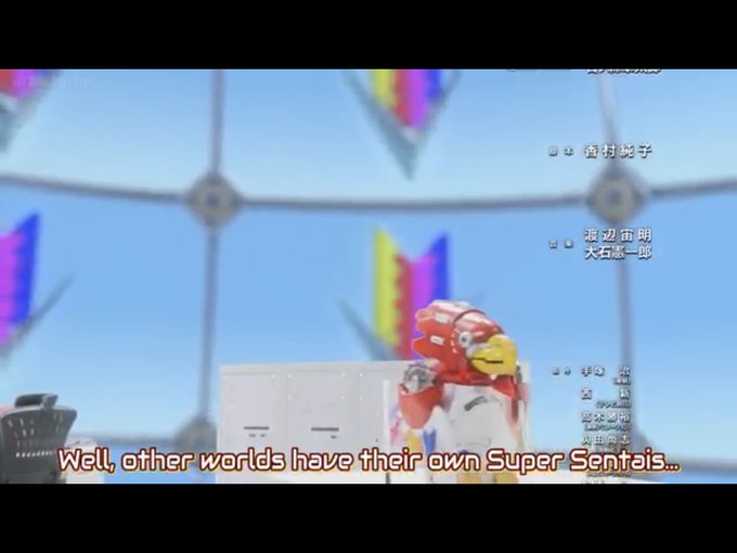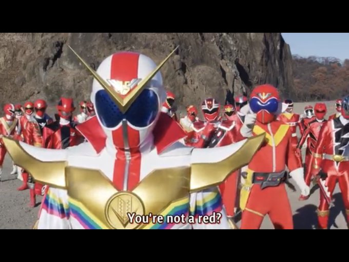 Androzani’s Tsukai Detour As I promised earlier, here’s my full review of… Kikai Sentai Zenkaiger the Movie: All Reds Great Assembly "Countless worlds found themselves....trapped within small machines, unable to resist. And the last world to be targeted........" The Machine Dynasty Tojitendo, rulers of the parallel world known as Kikaitopia, where life is mechanical rather than biological, has invented technology that allows them to seal off every parallel world in existence. But when it came time to seal the last one, it merged with a portion of Kikaitopia, rendering the sealing impossible. So they’ve decided to conquer the last world the old-fashioned way. But this world is not without defences. One human and 4 Kikainoids, using the powers of 45 Super Sentai from across the parallel worlds, will fight back to try and free the trapped worlds. Kikai Sentai Zenkaiger: Kaito Goshikalda/Zenkaiser: The kindhearted leader of the Zenkaigers who aims to be "Number One" at everything. His parents invented the Zenkaiger tech before they went missing. He currently lives with his grandmother Yatsude and toy bird Secchan. Juran/ZenkaiJuran: The oldest of the Kikainoids who thinks he's a Cool Old Guy, but is actually more of a Grumpy Old Man. Despite this, he's got a good heart and heroic sense of justice, as well as being pretty easy to get along with. He also really likes parties. Gaon/ZenkaiGaon: An Animal Lover Kikainoid who is the Team Chef. He also considers humans as animals and doesn't get along with the Kikainoids, as such he acts like a Jerkass to other mechanical lifeforms. Because of his love for animals, he joins the fight against the Tojitendo to protect them. Magine/ZenkaiMagine: The only girl (well, female mechanical lifeform) of the team. She claims herself to be introverted but in reality, she's a brazen fantasy Otaku who doesn't like cleaning at all. She's particularly fond of fortune-telling. Vroon/ZenkaiVroon: A Constantly Curious Kikainoid who's also a Neat Freak because of his previous profession as a garbageman. He initially served the Tojitendo as their janitor before he became a Zenkaiger after becoming fed up with Ijirude's treatment of him Allies: Secchan: A toy bird that Kaito's parents built before they disappeared. He acts as the mascot for Colorful and is deeply loved by both Kaito and Yatsude. He supports the team with his encyclopedic knowledge of past Sentai teams. Isao and Mitsuko Goshikalda: Kaito's parents who invented the Zenkaiger technology before their disappearance. They are particularly well-known for proposing the theory of parallel worlds, which was proven true when Kikaitopia merged with Earth Tojitendo: The tyrannical overlords of the alternate world of Kikaitopia, who have silently and swiftly conquered various realities throughout the multiverse — including the first 44 Super Sentai worlds — via sealing them within Tojiru Gears. However a glitch occured in sealing the very last World, the Zenkaigers’ World, resulting in part of Kikaitopia merging with it, thus forcing them to manually and physically conquer the merged World instead to expand their territory Great Emperor Boccowaus: The leader of the Tojitendo and king of Kikaitopia. He rules his empire with an iron fist (literally), needing no more than sheer presence and notoriety to command his minions. His goal is to bring all of the worlds under his empire. Mobile Captain Barashitara: The field captain of the Tojitendo. Due to his strength, he’s the most active one in the field, enjoying the exhilaration that comes with invading worlds and crushing his enemies into scrap. Despite his overwhelming power, he’s rather mischievous when fighting the Zenkaigers. Mechanical Officer Ijirude: The mechanic and scientist of the Tojitendo. He looks fairly reserved, but he’s actually the most zealous of the empire. It is said that he took the skills of a certain scientist and perfected them for himself. Gege: A robotic toucan that sits on Boccowaus’s shoulder. While he looks innocent, he’s actually the most capable member, using his position and the tyrant’s doting to enact his own plans with his silver tongue. Kudakkus: The Tojitendo’s footsoldiers. They wield Plug Lancers, spear with two-pronged plugs at the end. Kudaiters: The elite footsoldiers of the Tojitendo. Unlike the Kudakkus, they are fully capable of speech. They serve as a template for the Walds. Wales: Mechanical beings formed from Toziru Gears, which are created when the Tojitendo successfully seals a parallel world. When defeated, the parallel world they represent will be freed. Other villains: Basco ta Jolokia: A former member of the Red Pirates that proceeded the Kaizoku Sentai Gokaiger in their search for the Greatest Treasure in the Universe, he betrayed the others to the Space Empire Zangyack, before striking out on his own to find the treasure himself. Sally: Basco’s monkey-like alien assistant, who stores a set of Giant Battle Super-Lifeforms known as “roids”. Kyuemon Izayoi Kibaoni: The son and retainer of Gengetsu Kibaoni, who led his father armies in facing the Shuriken Sentai Ninninger over the Owari no Shuriken. Is the creator and master of Izayoi-style Yojutsu, which he copied from Igasaki-style Nintality. Bangray: A mega beast hunter who got caught up in Doubutsu Sentai Zyuohger’s battle with the Deathgalien during his search for the legendary Cube Whale. He has the ability to read people’s memories by touching them and then create copies of people he sees. Zamigo Delma: A member of the Interdimensional Criminal organisation Gangler, selling skins of humans he had captured as disguises to other Ganglers. Unfortunately for him, three of those victims had relatives who saw him seemingly killing them and became the Kaitou Sentai Lupinranger to avenge their loved ones. He has a Lupin Collection that gives him the ability to produce unlimited bullets that can instantly freeze anything they hit. It