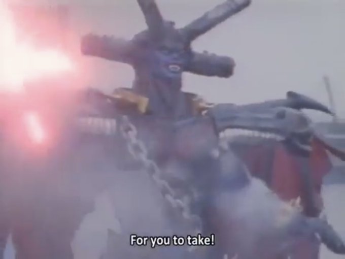 Androzani’s Tsukai Detour And this week, we’ll be covering… Kyukyu Sentai GoGoV Vs Gingaman (There’s no title card image this time, due to me missing the timing. There is this though) Since I already did the majority of GoGoV’s cast last time, I’ll be using the slot here to cover those who didn’t appear in “Clash! The Brand New Super Warrior!” Allies Liner Boy: A sentient robot that transforms into a space shuttle built from designs provided by Kyoko Hayase, with an AI unit developed by Dr. Kagami, that not only allows it to function without a pilot but also gives it a voice and personality of its own, essentially making it the*"sixth"*of the Tatsumi siblings. Can function as the front of the GoLiner in Max Shuttle form, or combine with Victory Robo to form Max Victory Robo. Psyma Clan Grand Witch Grandiene: Matriarch of the Psyma Clan and the ultimate combination of all the negative energy in the universe, who came into being four billion years ago. She set everything up for her arrival in this reality on the day of the Grand Cross. However, the GoGoFive interrupted the ritual and Grandiene ended up trapped half-way. Since then, she has ordered her sons and daughter to gather the negative energy needed to recreate her true form. Dragon Dark King Salamandes: Following the defeat of Zylpheeza at the hands of Max Victory Robo, his Dark King Star passed onto his brother Drop, causing him to undergo a metamorphosis into first a young boy with pyrokinetic powers, and following Grandiene’s return, the adult demon Salamandes. Using the Dark King Star on his chest, Salamandes can create the Saima Zone in which the solar light is completely cut-off, allowing the Psyma beasts to boost their power tenfold, while leaving the Victory Robo, LinerBoy and the Max Victory Robo combinations vulnerable. He will do anything to earn his mother’s favour, even sabotage his own siblings in their schemes, but his recent failures have caused him to fall out of failure with her. Skipping the opinion part, I’ll go into the credits. In addition to the new producer Hikasa, this VS movie has a new writer, Yasuko Kobayashi (if you haven’t heard of her, then what rock have you been living under?). The director is Takao Nagaishi, who has worked on one of these before. So with all of that said, on with the review. (Yes, we’re going all in on the creepy this time) We open with a horde of hooded creatures emerging from the ground (represented by them walking up a hill) at the dead of night, during a storm. A sole figure emerges from the other side to take them on in battle with his sword. But then their leader appears, which gives the demon soldiers the strength to prevail. This does not go unnoticed at Psyma Paradicio, where Grandiene reacts… With recognition. After a sequence of the Tatsumi siblings doing firefighting drills at the beach, set to the theme song, Matsuri notices a young boy sitting alone on the rocks. The boy is about to sit down and read a book. When approached by Matsuri, the boy says that he is waiting for a friend, who he points out to them in his book. They thus assume the friend is imaginary, until Ryouma appears in real life to greet Yuuta. As the Tatsumi siblings are shocked to see the guy in the picture book in real life, and as Yuuta gifts him the Star Legends book, Ryouma collapses. Matoi discovers that he’s bleeding (this ain’t your daddy’s vs movies anymore), with his attackers appearing soon after. The Tatsumi Siblings equip the GoSuits and shoot the enemies down with their Five Lasers… which fails to defeat them, as does the V-Lancer. It takes Ryouma summoning up a Honoo no Tategami to repel them. Ryouma is taken back to the Tatsumi Disaster Prevention Institute (read: Their house), whereupon it turns out that Daimon has read Star Legends and become a Gingaman fanatic instantly (dear god, he’s us) Enquiring after the Starbeasts, Ryouma explains that they lost contact with them a few days ago, during the Grand Cross (considering Victory Mars appears in this, and that was 5 episodes after the Grand Cross, evidently a lot happened in a few days, considering none of the interim episodes were multi-parters), Hyuuga is searching for GoTaurus and that the other Gingaman members have split up to find anything they can on the new enemy beyond “they appeared in the dark”. Cue the tv reporting on someone who Mint thinks is Ryouma’s ally. Sure enough, it’s Gouki. As Gouki nervously soaks in the spotlight, Hikaru is frustrated. Mokk then contacts Ryouma from within the Galaxy Forest, to tell him of a strange force (way to be helpful, Mokk), while Matoi looks about ready to murder Daimon over his obsessive fanboying (believe me, I’ve felt the same way sometimes) Ryouma leaves Yuuta at the Institute while he and the Tatsumi siblings leave… just as Mondo enters, looking for a legendary warrior to help make sense of some readings he’s been getting. The group meet up with Gouki and Hikaru at the beach, where the sky starts to darken and the wind picks up. (And it turns out that while Ryouma is aware of GoGoV, Gouki isn’t and Hikaru doesn’t believe it’s the guys wearing the GoGoV emblem on their jackets. Truly the gamut of secret identity reactions here) Both sides are soon attacked by the demon from earlier, now fully visible. A demon Grandiene recognises as Gil (which is a common name for evil demons in Japanese media. Don’t ask why). As Kobolda and Denus wonder who Gil is, Salamandes fills them in (how he knows and they don’t, I’m not sure about) They then ask why he isn’t ruling alongside them, to which it turns out that even an abusive mother obsessed with destroying everything alive in the universe has some morals. As Salamandes wonders why he’s returned from ruling over the dead, Gil summons up an army of his ghosts, revealing his status as the perpetrator of all this to the heroes (but not the audience, who already knew). The two grou