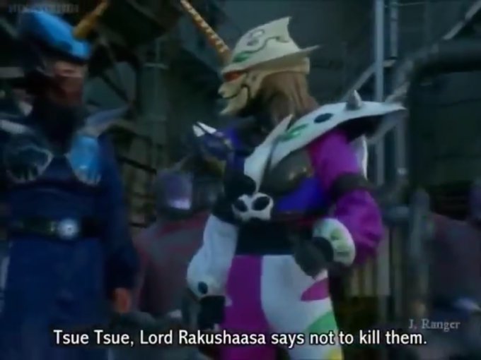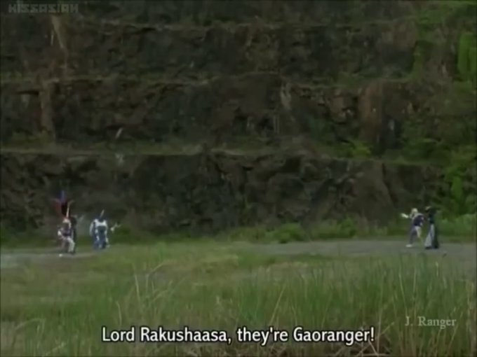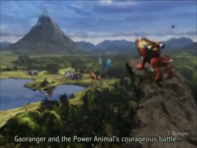 Androzani?s Tsukai Detour This one?s going up earlier than usual due to the length of both the movie and the finished review, so let?s begin our review of? Hyakujuu Sentai Gaoranger vs Super Sentai ?Demons that are born from evil hearts, the Orgs corrupt nature and tried to destroy all life. It's up to the Gaorangers to stop their schemes; five warriors chosen by the Power Animals who protect the Earth, the Gaorangers use Gao Soul and natural animal powers to fight the Orgs.? There are those that destroy nature and try to destroy all life. The Hyakjujuu Sentai Gaoranger are five youths chosen by the holy power, Power Animals, that protect the Earth. Land, sky, sea. With various animal power movements, they fight the evil group Org. The Gaorangers' weapons hold the Power Animal's energy. When their five weapons combine, the giant finishing sword Haja HyakujuuKen is formed. It has the power to cut Orgs in half. Gaoranger: Kakeru Shishi/GaoRed: Known as the Blazing Lion, Red is a veterinarian chosen by GaoLion to lead the Gaorangers and become GaoRed. He is highly compassionate with the ability to talk to animals, and controls GaoLion and GaoGorilla. Gaku Washio/GaoYellow: Known as the Noble Eagle, Yellow was the first Gaoranger recruited and spent a year working alone with Tetomu. He often clashes with Red because he resents being replaced as the team leader, though eventually their rivalry cools. Controls GaoEagle, GaoPolar and GaoBear. Kai Samezu/GaoBlue: Known as the Surging Shark, Blue is the youngest male on the team and a former "freeter" who has a close friendship with Black. He controls GaoShark and GaoGiraffe. Sotaro Ushigome/GaoBlack: Known as the Iron Bison, Black is a former sumo wrestler-turned-florist's assistant who is best friends with Blue. Despite being The Big Guy he is actually very sweet (unless you threaten the people he cares about) and scares easily. He controls GaoBison. Sae Taiga/GaoWhite: Known as the Belle Tiger, White is the youngest team member and the only girl. She is a martial arts student from Kagoshima and the heiress to a dojo there. Controls GaoTiger and GaoElephant. Legendary Super Sentai: Yusuke Amamiya/Red Falcon: A poor student of Academia. When Kenji, Gou, and Rui had joined up with a terrorist unit called Brain Army Volt, Yuusuke swore to destroy them for the loss of two of his four friends, not to mention the destruction of the entire college. Daimon Tatsumi/GoYellow: see here Gouki/GingaBlue: see [ here Miku Imamura/Mega Pink: see here Banba Soukichi/Big One: see here Allies: Gao Priestess Tetom: the 1022-year-old Gao Priestess of the Animarium who serves as mentor to the current Gaoranger team, succeeding the role from her great-grandmother, Murasaki. She lives in Gao Rock and lies dormant within the holy spring when there is no mission. She has an abnormal ability to power electronics with only her touch. Oni Tribe Org: A clan of demons born from the negative emotions of humans, who waged war with the Power Animals 3000 years ago. They have been rebirthed in the modern era by a statue known as the Org Master. Duchess Org TsueTsue: one of two Duke Orgs that serve the Highness Dukes and an arrogant Org priestess who has powerful magical abilities. She developed an instant hatred of GaoWhite for calling her "Grandma" (「お祖母さん」 "Obāsan"). She and Yabaiba are often the comic relief. She is in charge of reviving and enlarging the Baron Orgs by using special soybeans called Org Seeds (オルグシード Orugu Shīdo) fired from her staff and chanting, Org Seeds, please allow the fallen to regain their enormous wicked power! Ogres Come in! Blessings go out!! (オルグシードよ、消 きmえゆかんとする邪悪 じゃあく に再 ふたた び巨大 きょだい なる力 ちから を!鬼 おに は内 うち!福 ふくは外そと‼ Orugu-shīdo yo, kieyukan to suru jāku ni futatabi kyodai naru chikara wo! Oni wa uchi! Fuku wa soto!!). Duke Org Yabaiba: A crazed pierrot-like master of knives who claimed himself to be GaoYellow's greatest rival (Though the feeling wasn't mutual). He commonly blurts out That's yabai-bad! (これはヤバイバ! Kore wa yabai-ba!) whenever things got wrong for him and the other Orgs. He is always seen with his partner Duchess Org Tsuetsue, always trying to impress his Highness Duke Org masters. What do I think of Gaoranger? As one of the first seasons I watched (the fifth, to be precise), I?ve got a bit of a soft spot for it. Helps that it features some funny gags and interesting plot developments. And the fact that we don?t know the heroes? real names for much of the show makes their friendship moments stand out all the more. As for the movie itself, the writer is Masanao Akahoshi, who wrote a few episodes of Gaoranger, but is better known for his work on a couple of obscure card game anime (Cardfight Vanguard, Duel Masters and Future Card Buddyfight), in addition to A Certain Magical Index. The directors chair is filled by Noboru Takemoto, who I can?t find any major credits for, beyond some other Sentai movies. With all of that said, it?s on with the review. We open with a shot of the Earth with shots of every previous villain group (For the uninformed, and as listed by the extended ED, that?s KuroJuji Army, CRIME, Egos, the Vader Clan, Black Magma, Deathdark, Jashinka, Gear, Gozma, Mess, Tube, Volt, Bōma Hundred Tribes, Zone, Vyram, Bandora, Gorma, Youkai Army, Baranoia, Bowzock, Nezirejia, Barban, Psyma Clan and Londarz). The narrator explains that Earth has been attacked multiple times over the years, and every time, it has been defended. It then introduces us to the current conflict in the most epic way possible: the Gaoranger theme tune. Roar! Pounce at them! Roar! Take a bite! Roar! Shout! Roar! Defeat! Roar! Roar! Graaahhh!! The spirits of the beasts Are spirits that resound together Sharpen your five senses To open up the sleeping power Roar-rar, roar-rar Roar-rar, roar-rar (Gaoranger