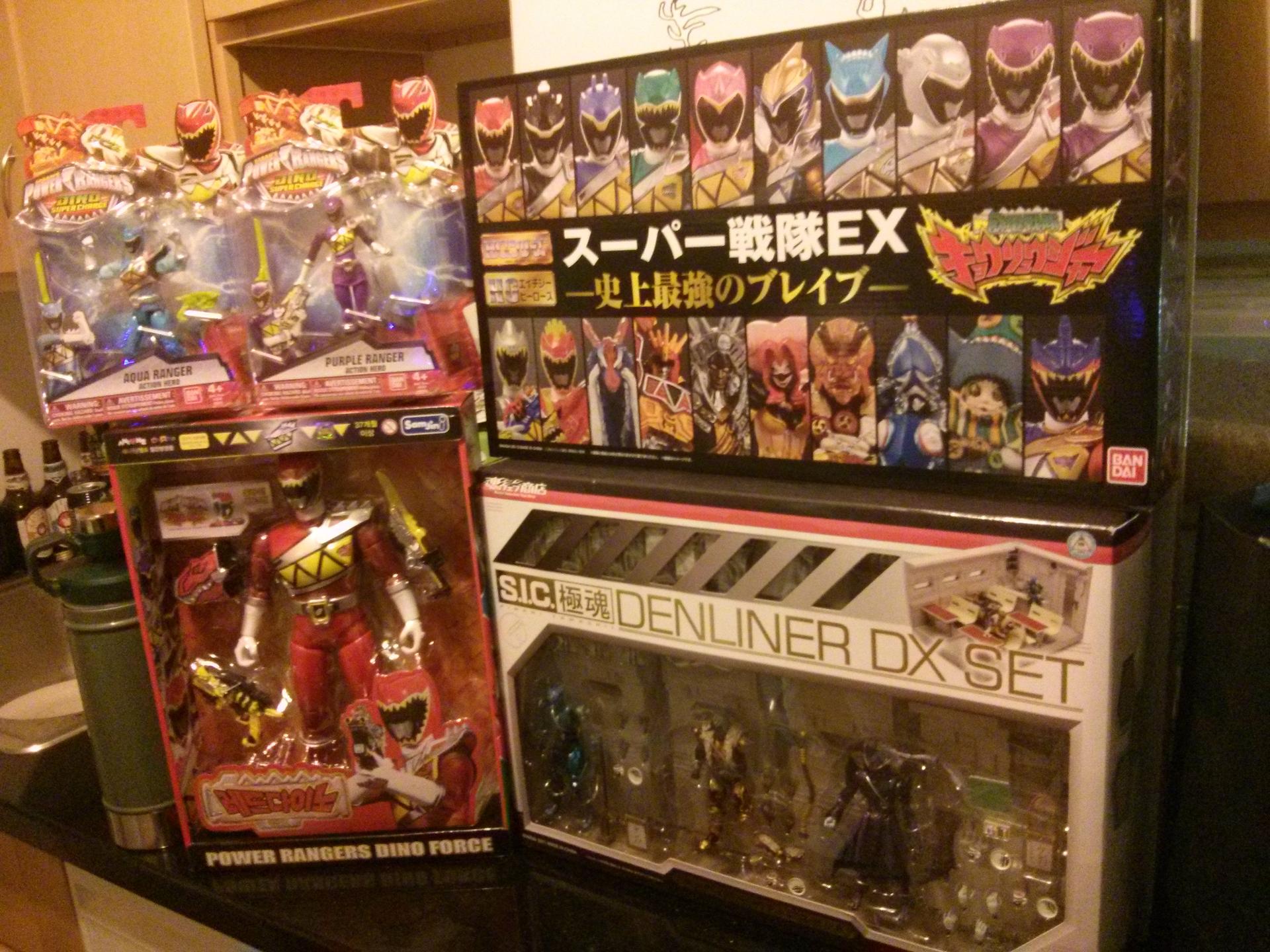 Finally got Kyoryuger ex figure set! Friend picked it up in Osaka for me for 10000 yen. Worth it at that price for me. Also got Denliner DX from Mandarake. Shame they never made an SIC Kiwami Deneb. Also aqua and purple from Target. They are one to a case. Still haven't seen 5in plezuon. Sledge? was in the case instead. Also while in Seoul I got a 12 inch Kyoryu Red from Korea Power Rangers Dino Force. It has sounds too. Haven't opened it yet. Anyone else have this? Seems there's a black too.