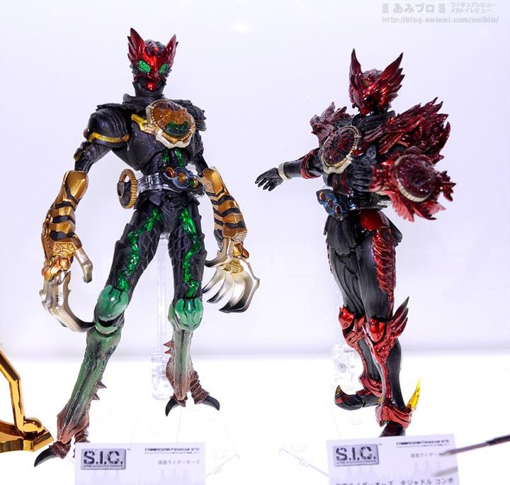 SH Figuarts on display include: A full Kamen Rider Fourze display, including Cosmic States, the Leo Zodiart, OSTO Spacesuit, Power Dizer and the various module/effect parts Kamen Rider Knight Survive Kamen Rider Super-1 Kamen Rider Zeronos Kamen Rider Den-O Super Climax Form Genocider While the SICs seen include: Kamen Rider OOO Tatoba and Tajadoru combos Kamen Rider Gills & Another Agito and Gills Raider/Dark Hopper bikes Kiwami Tamashii Kamen Rider Decade Check out the gallery after the jump!