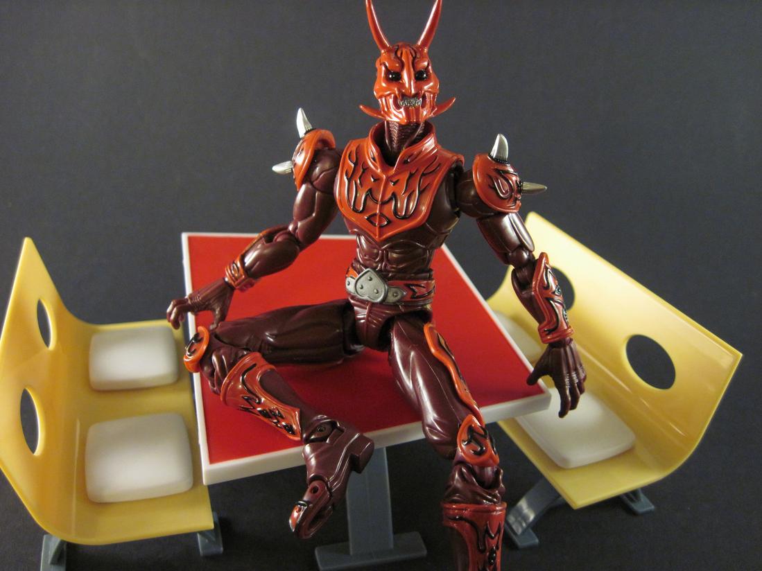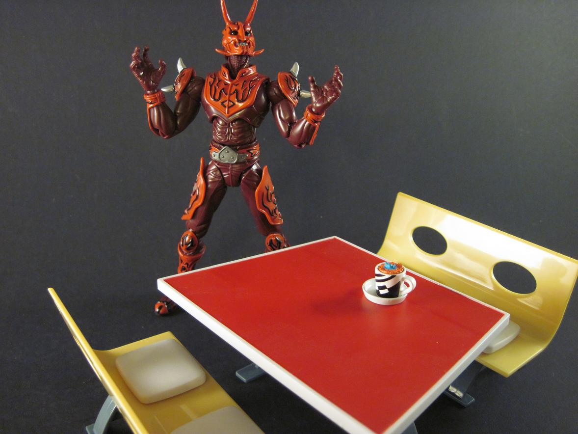 Ore Sanjou! Straight from Kamen Rider Den-O is the first Imagin Ryutaro made a contract with, Momotaros! S.H. Figuarts Momotaros DX includes a table and set of benches from the Den-Liner that aren't included with the standard release. Are these added bonuses worth the price difference? Do you want to own the fiery peach based warrior himself? Check out Tokunations' full 16 image gallery and decide!