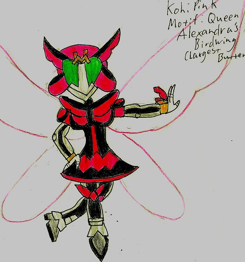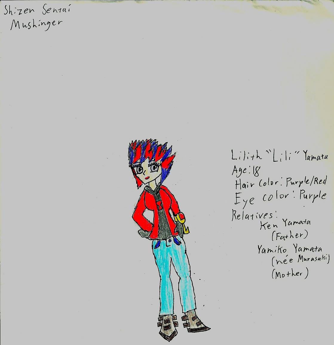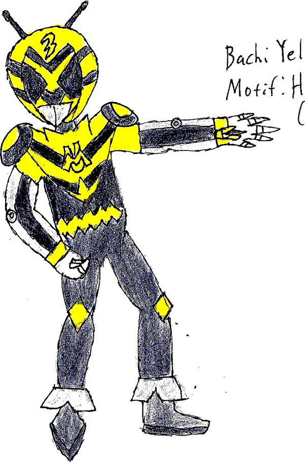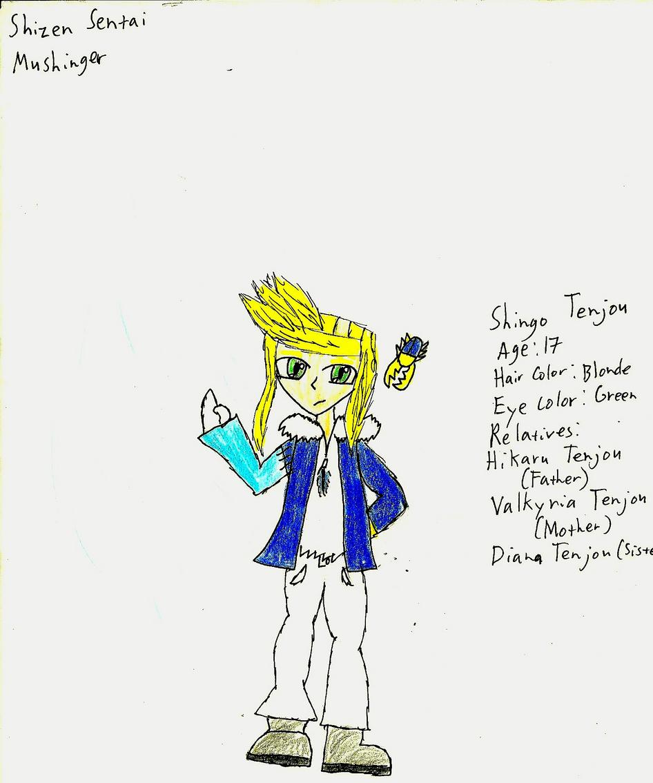 KabutoRed/Lilith Yamata- 18 yrs old, daughter of MythoRed and MythoViolet. It was under her request that her father make her and her friends the Mushinger gear after they had grown to weak to use their powers. Her hair is a mix of her parents, primarily purple with Red streaks. Like her parents, she can manipulate darkness and fire. Despite being based on a Kabuto Beetle, she primarily dresses up in Black Widow-themed clothing. GataBlue/Shingo Tenjou- 18 yrs old, Son of MythoBlue and MythoValkyrie. Like his father, he can manipulate water, and uses it to form blue wings similar to that of his mother. He inherited her blond hair and his father's green eyes. He's pretty superficial and will tend to argue with Lilith all the time. Motif- Stag Beetle. BachiYellow/Jakk- The only member who is not related to the Mythonger in anyway, Jack stole the Bachi gear to fight against the Venom Empire to save his sister. Eventually is accepted into the group, and falls for Lilith. Motif- Hornet KiriGreen/Jiro Hatake- 17 yrs old, one of the twin children of MythoGray and MythoPink. Jiro, like his father, has a strong ability to manipulate the Earth. He inherited his father's Gray hair, but dyed part of it green. He falls in love with a girl named Charlotte, unaware that she is really Kurogoke (Black Widow) of Venom. Motif- Praying Mantis AgehaPink/Hina Hatake- 17 yrs old, Jiro's twin and the daughter of MythoGray and MythoPink. Like her mother, she can manipulate the air and wind. She is the classic stereotype of the girly girl, but also inherited her mother's love of pranks. She inherited her father's gray hair, but dyed some of it pink like her mother did before. Motif- Butterfly