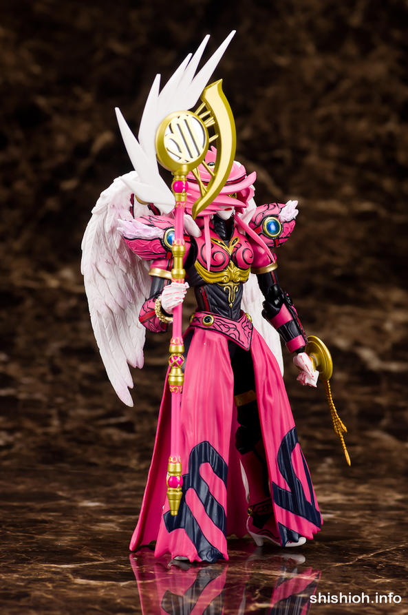 Virgo's accessory count includes a set of alternate hands, a seperate cloak piece, and a staff. Shishioh's photo gallery also shows off this figure in action with the other Fourze Figuarts, such as Libra, and Scorpio Zodiarts, Fourze Base States and Meteor Storm, along with a how to attach Virgo's cloak demonstration. Check out Shishioh's gallery after the jump! |